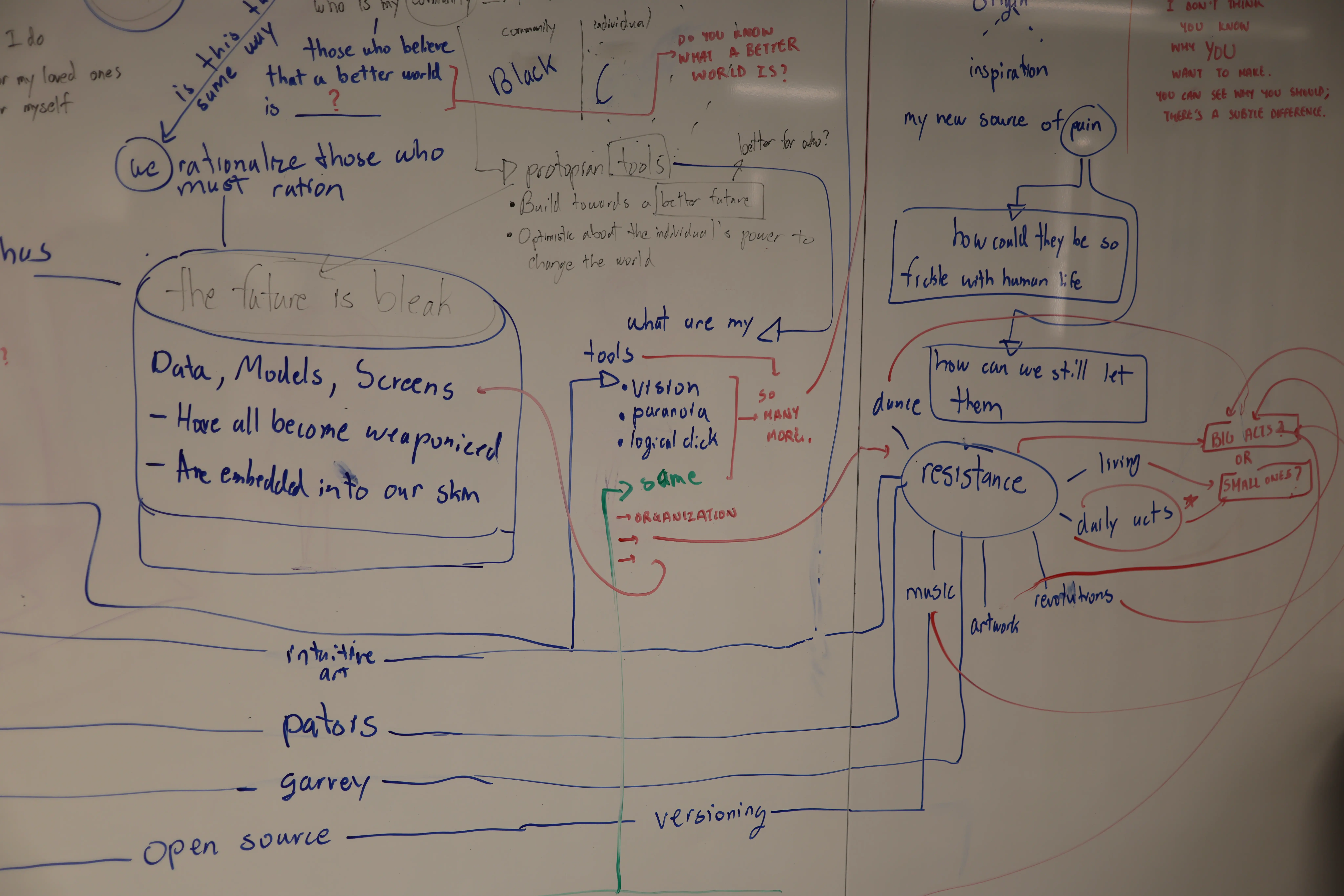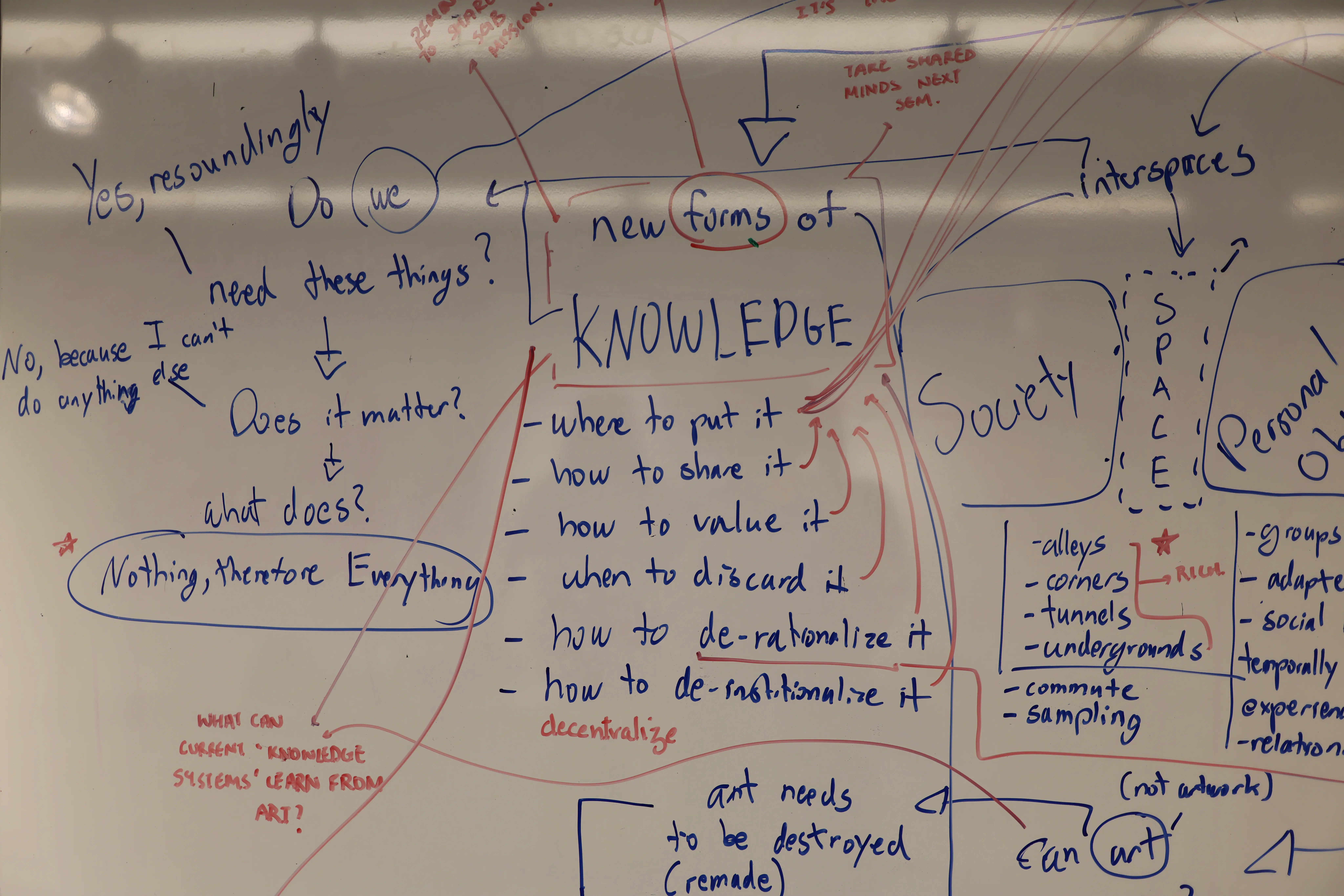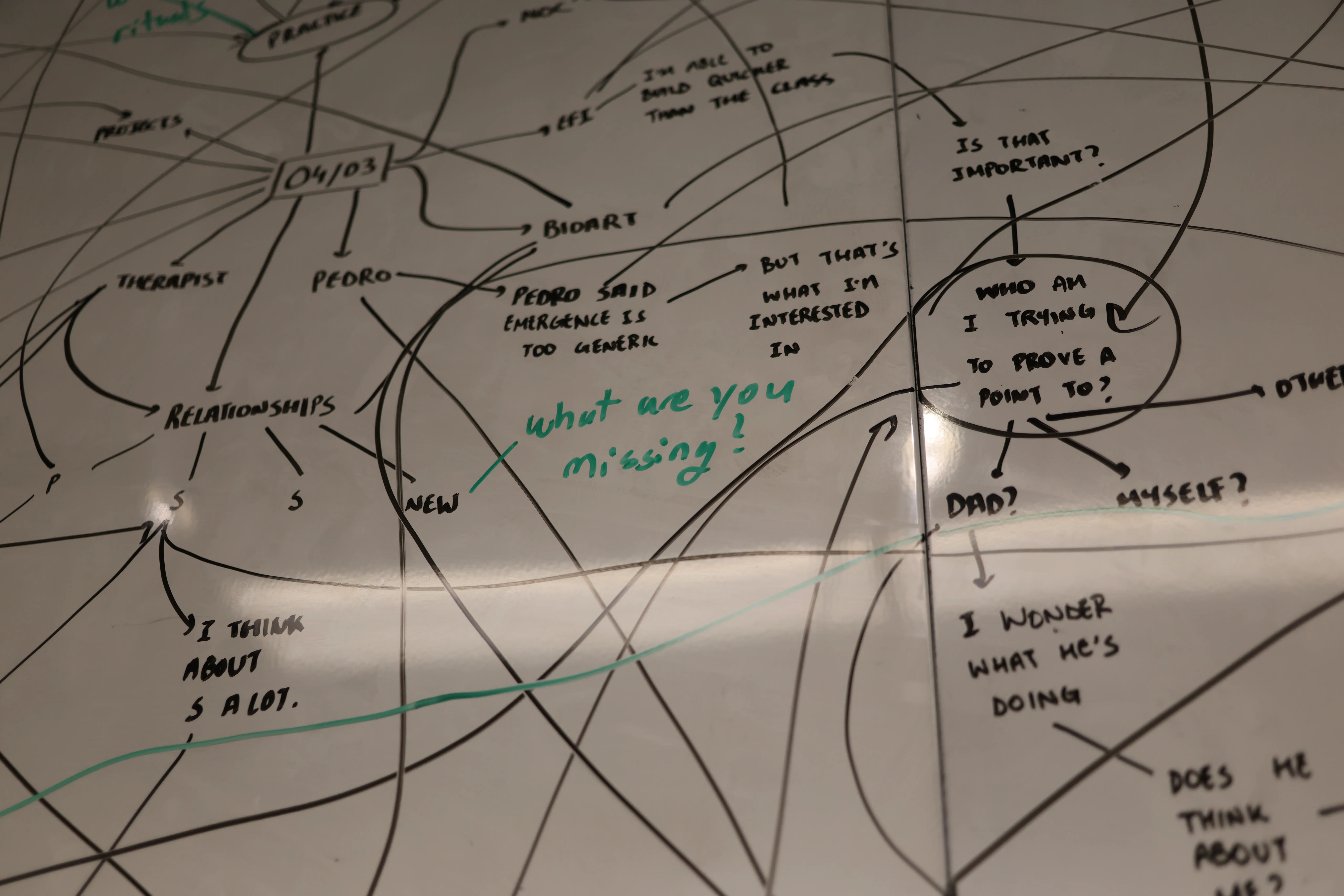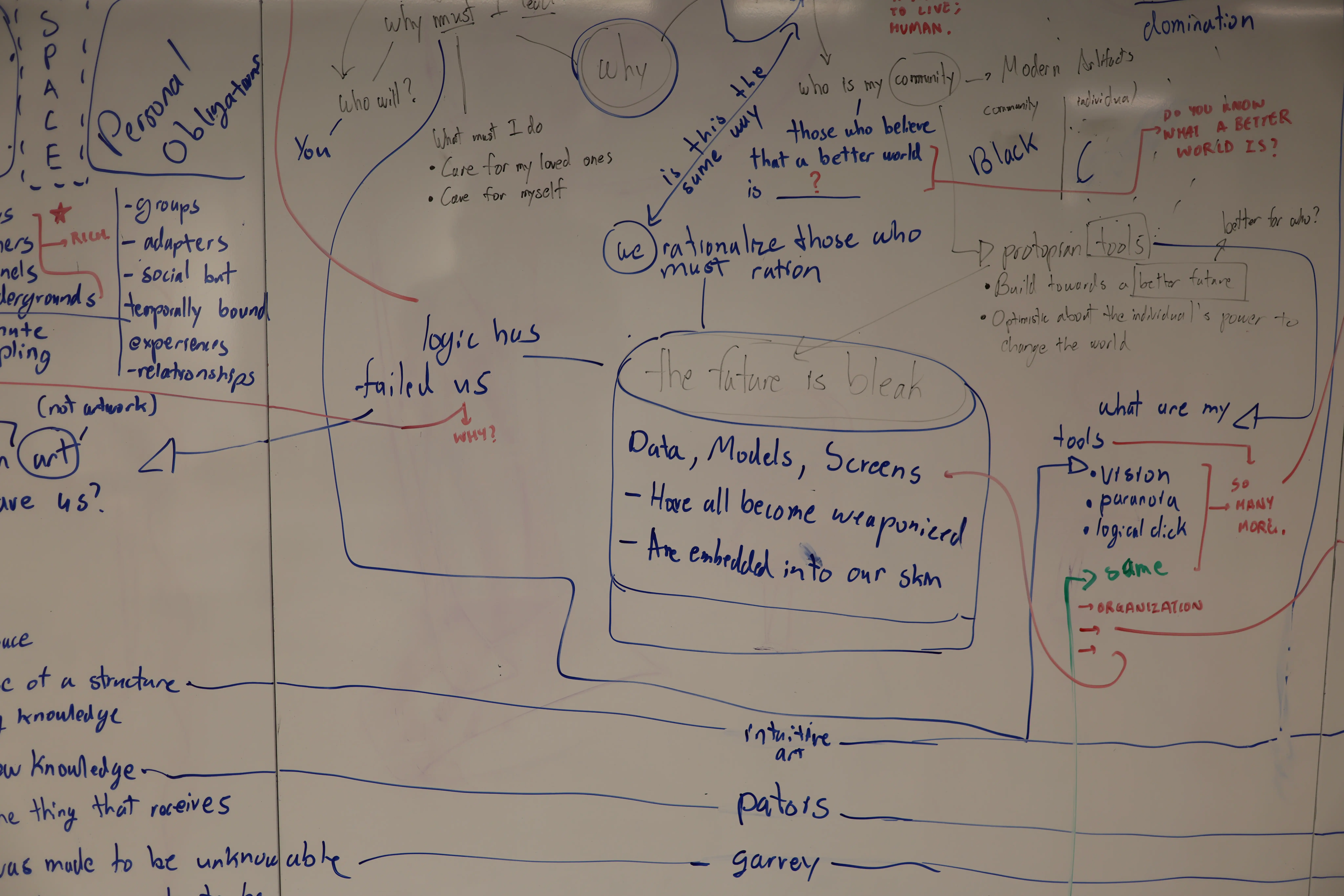 ryan had the idea to do a big ‘brain-dump’; after cody & i did the performance piece with cody. so, we went in a classroom, decided to record it as a performance, and a structure emerged.