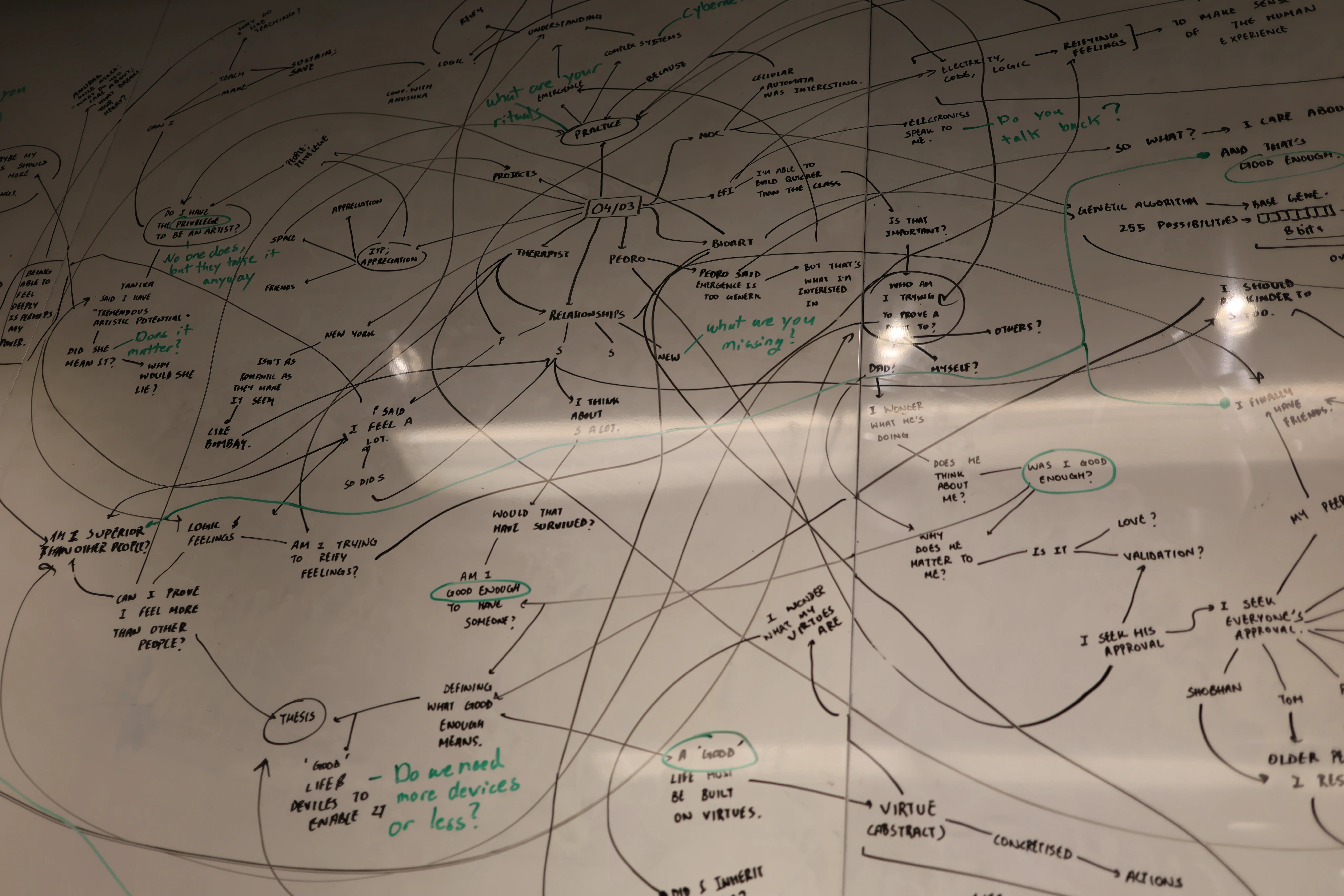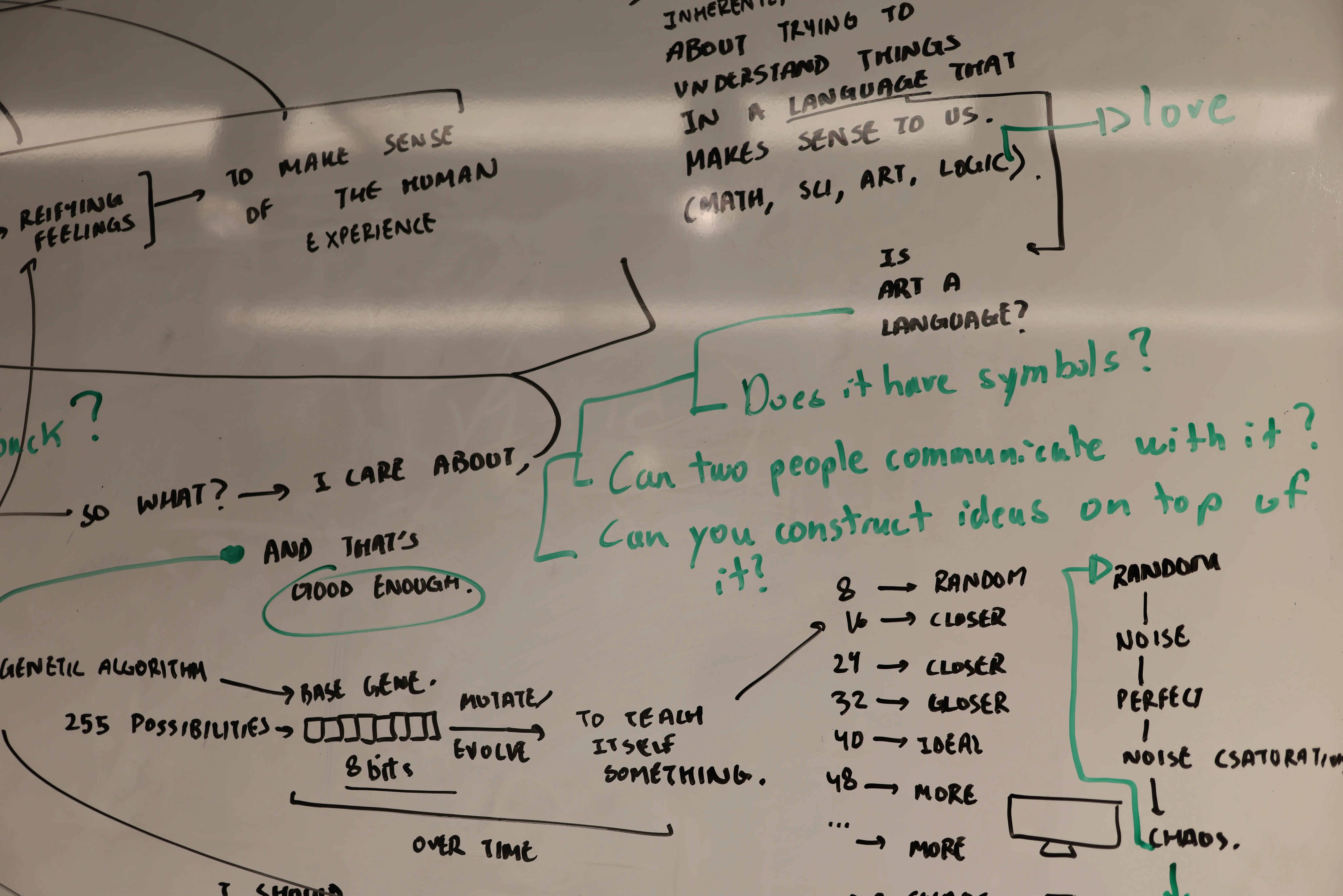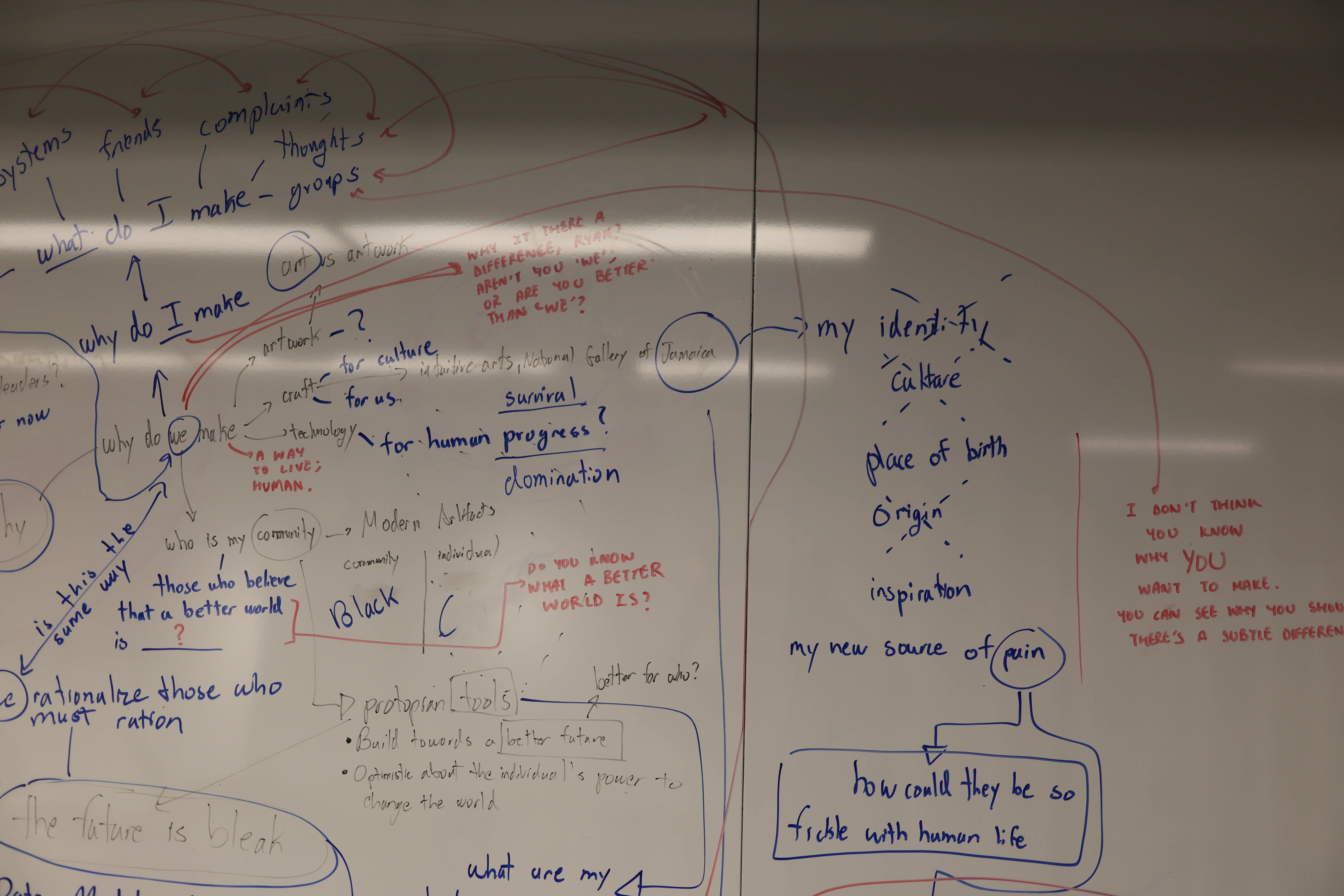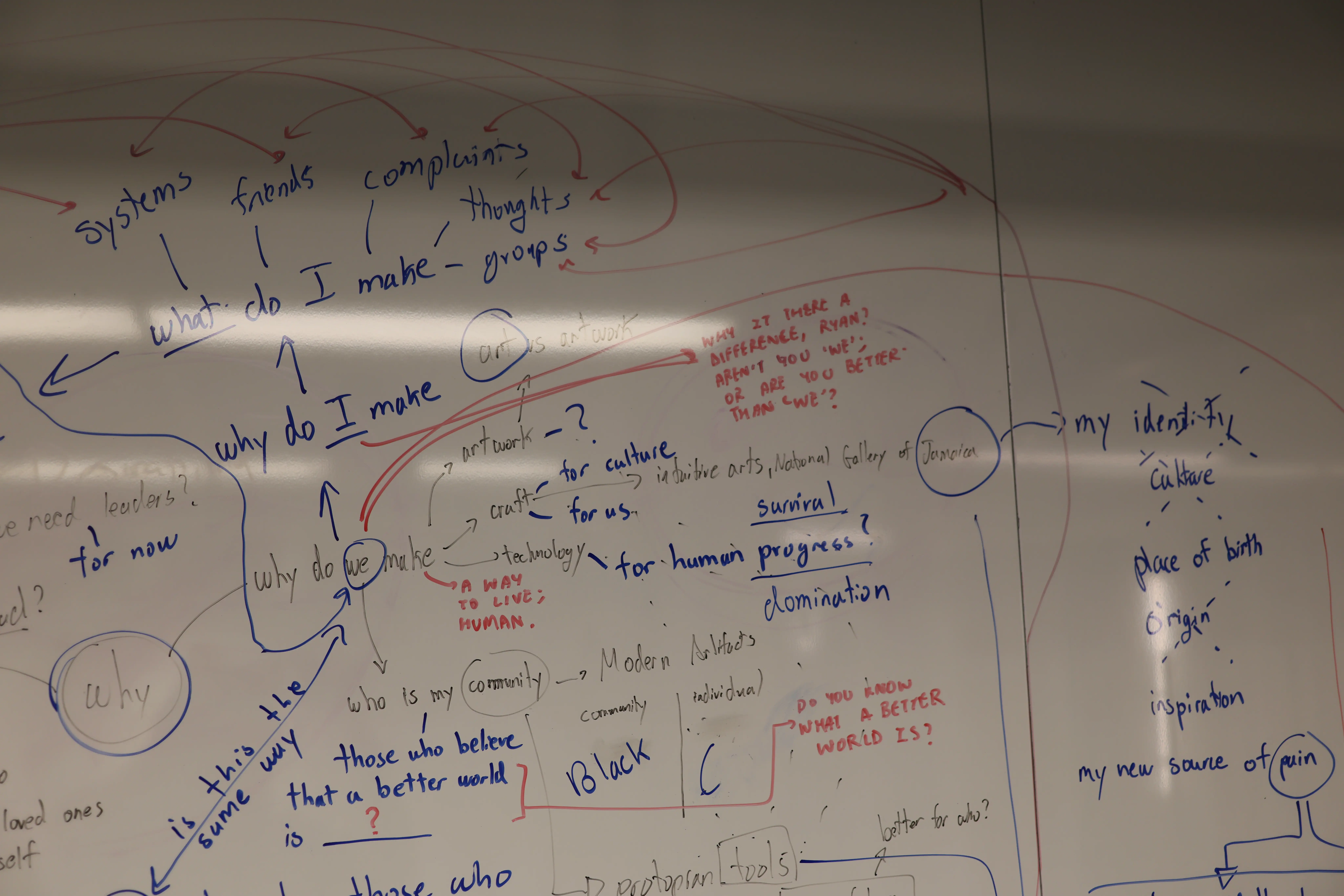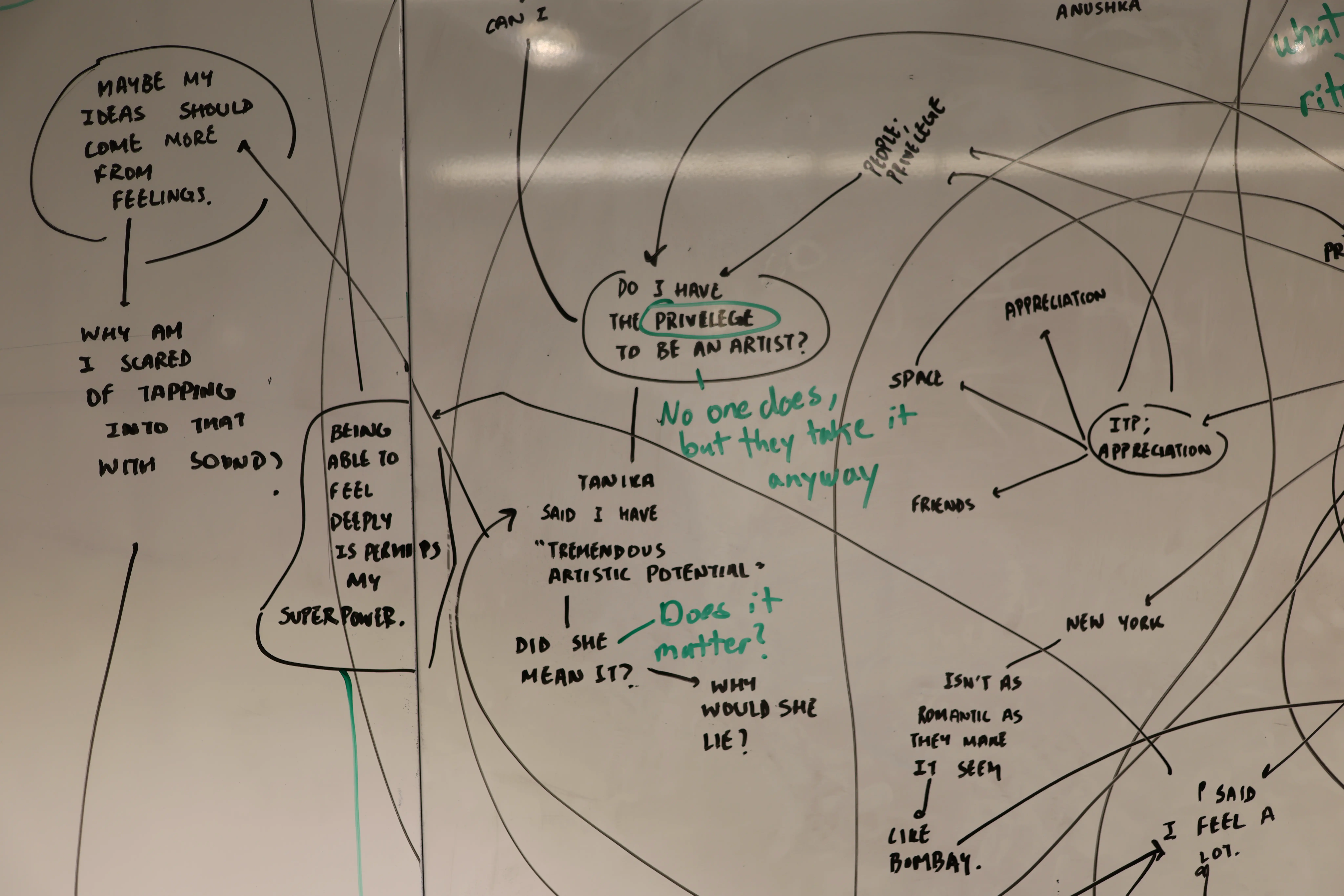 ryan had the idea to do a big ‘brain-dump’; after cody & i did the performance piece with cody. so, we went in a classroom, decided to record it as a performance, and a structure emerged.