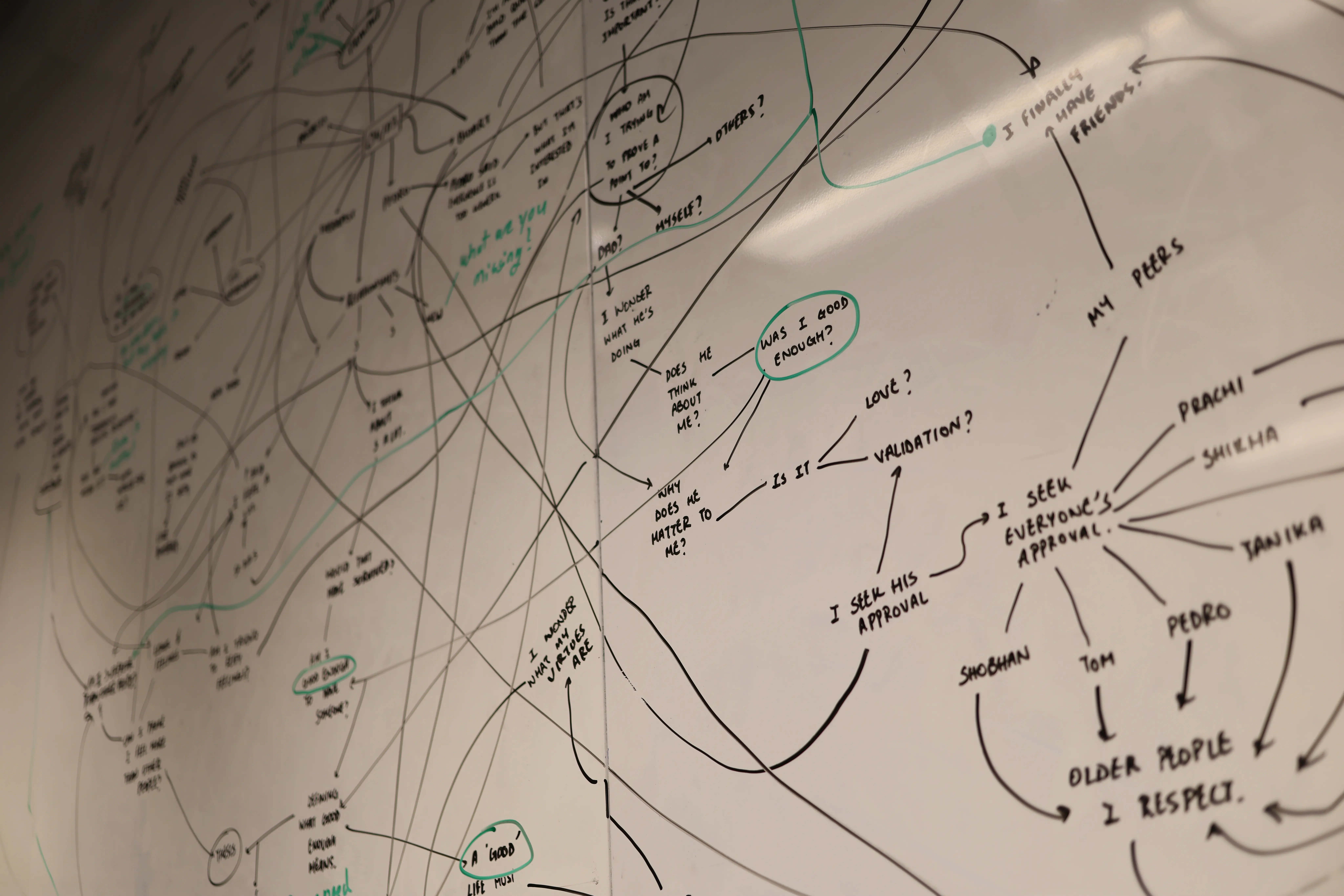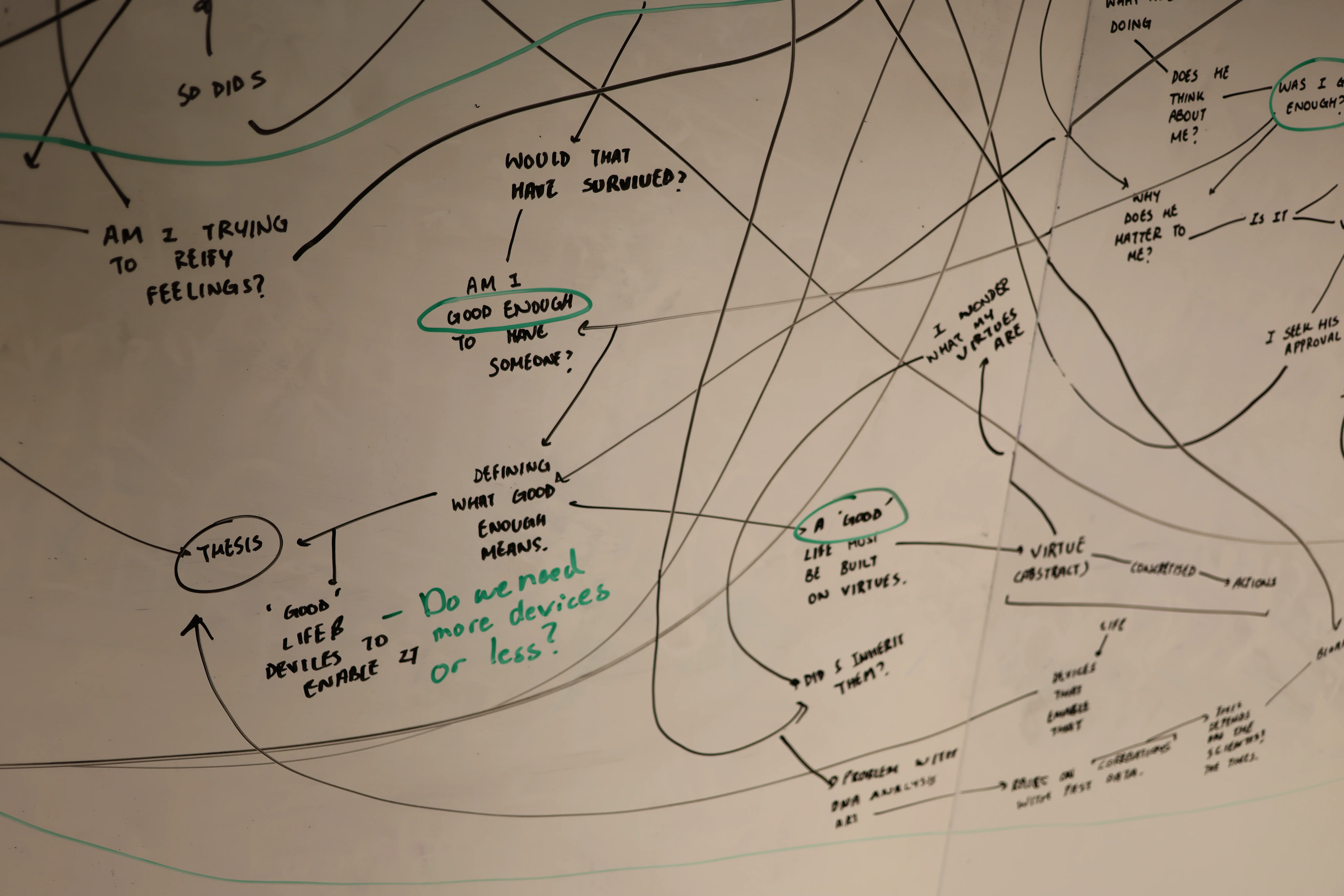 we took 40 minutes to individually make a mind-map in complete silence. then, we walked over to each other’s and left comments. that was it — we didn’t converse after that; but ended up getting a lot out of the hour or so that we spent together.
