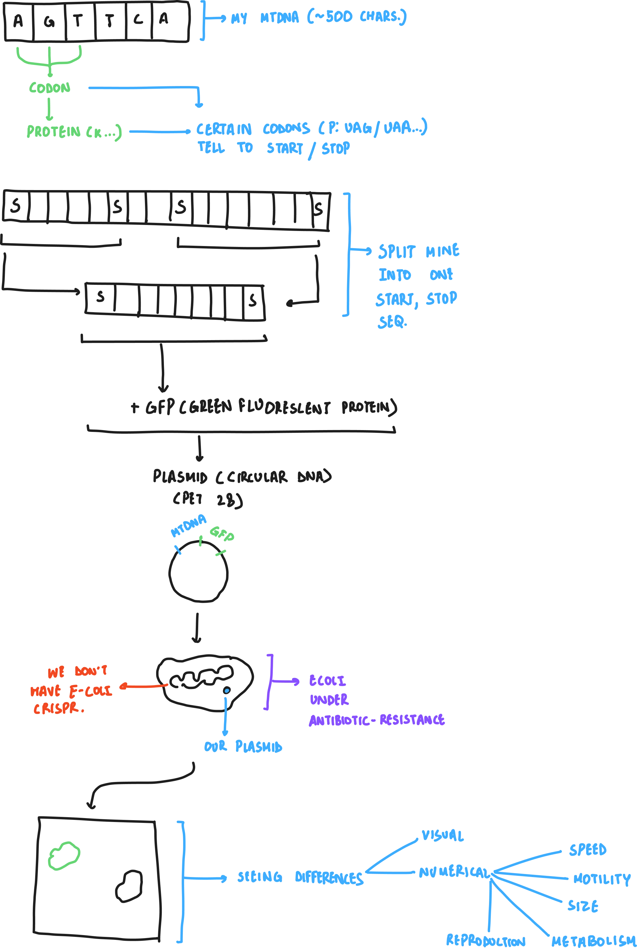 the idea was to use my mtdna → put it in another organism → see how it affects the organism / how it mutates over time.