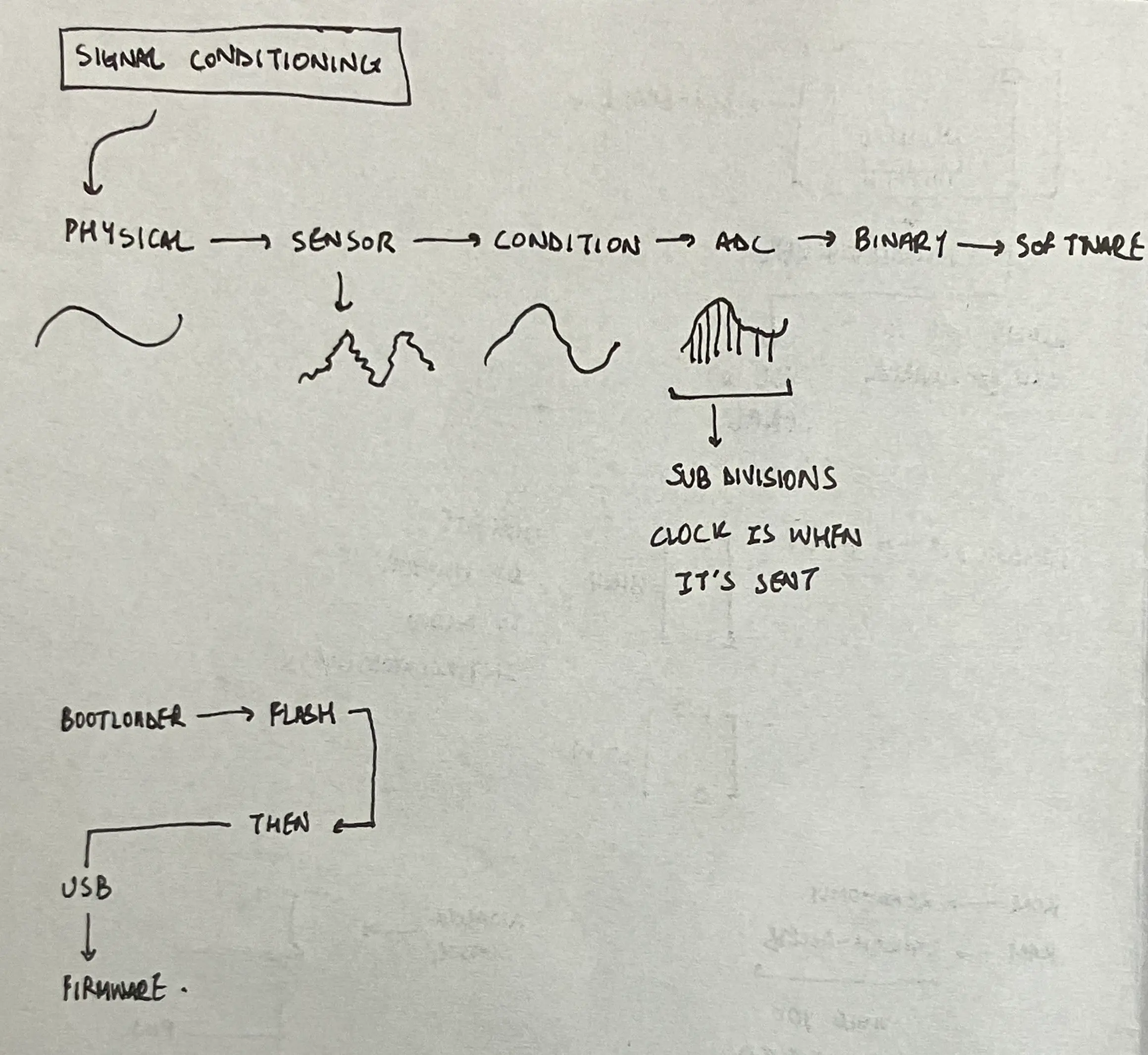 bootloader → usb to uart → microcontroller → crystal, timing etc.