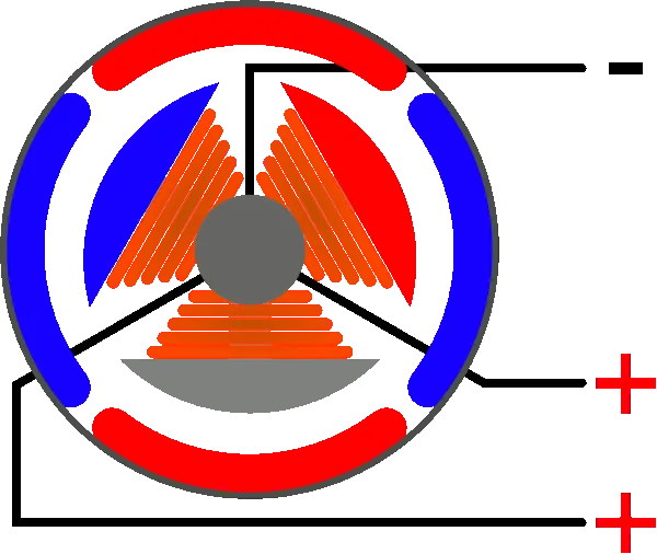 As the windings are energized, they attract to the magnets located around the motor. This rotates the motor until the brushes make contact with a new set of commutator contacts. This new contact energizes a new set of windings and starts the process again. To reverse the direction of the motor, simply reverse the polarity on the motor contacts. Sparks inside a brush motor are produced by the brush jumping to the next contact. Each wire of a coil is connected to the two closest commutator contacts.