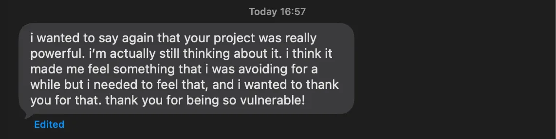 when i presented in class, people cried. i hadn’t anticipated that. turns out that it was a really powerful project.