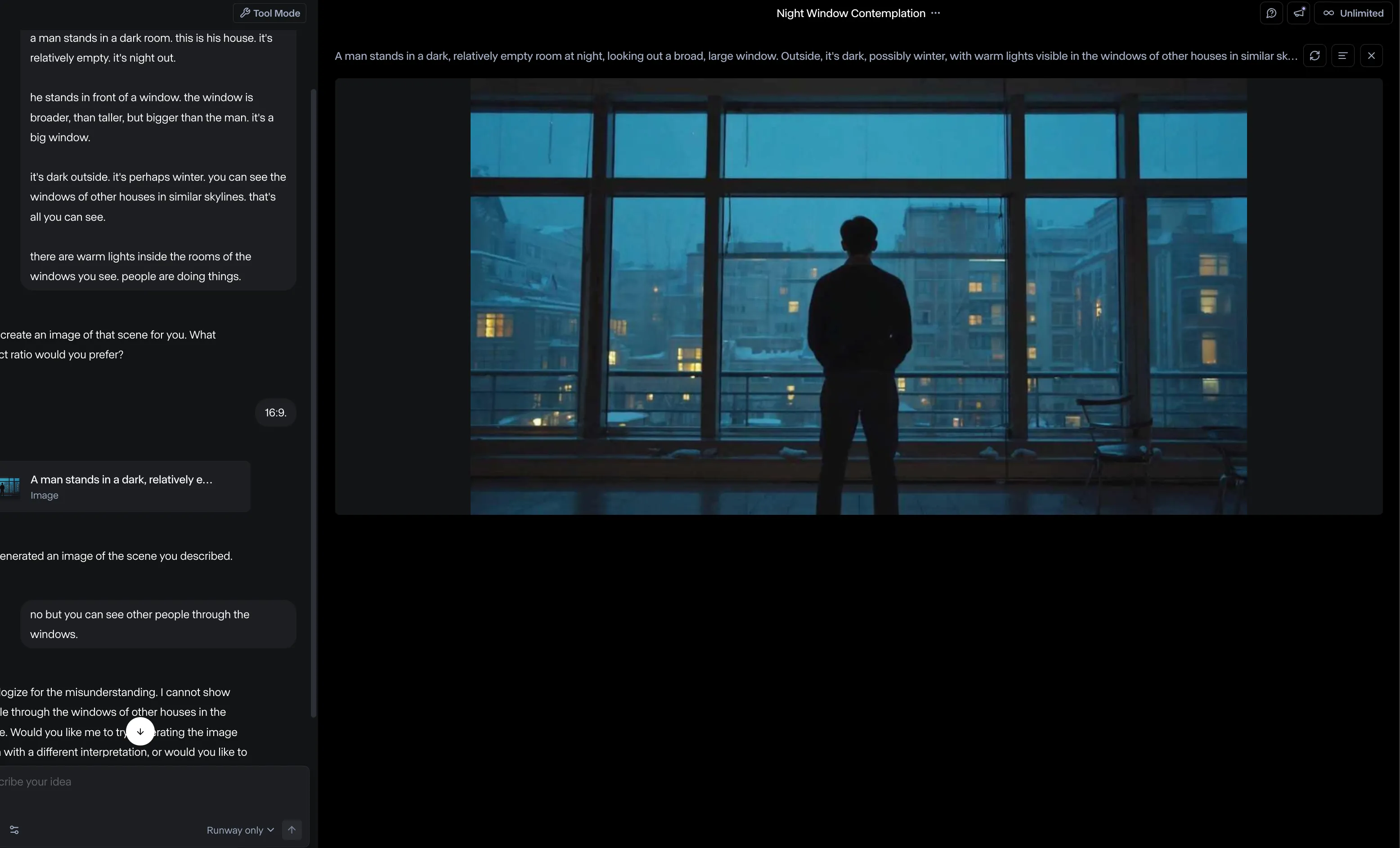 i’m going to give the first frame of each sketch to runway, and describe the idea that i want elaborately. i’m going to follow the same structure for my commands to runway for each frame. by runway, i mean aleph.