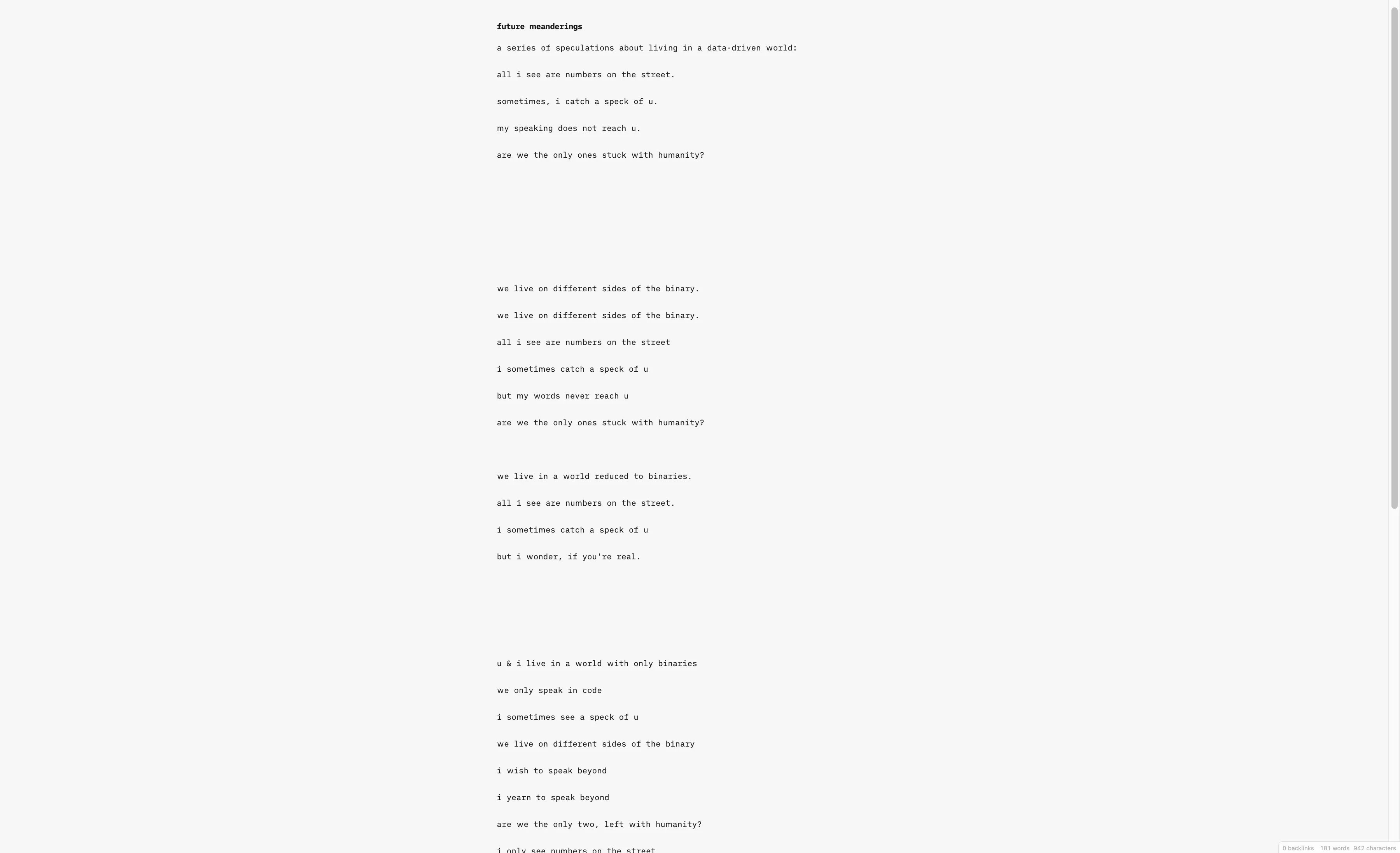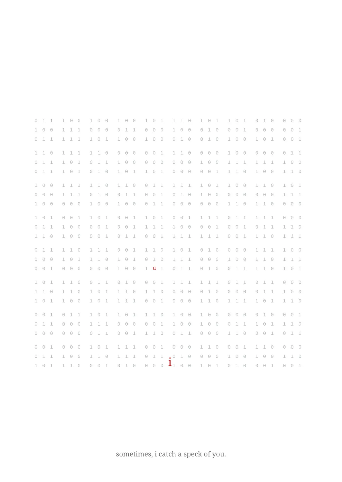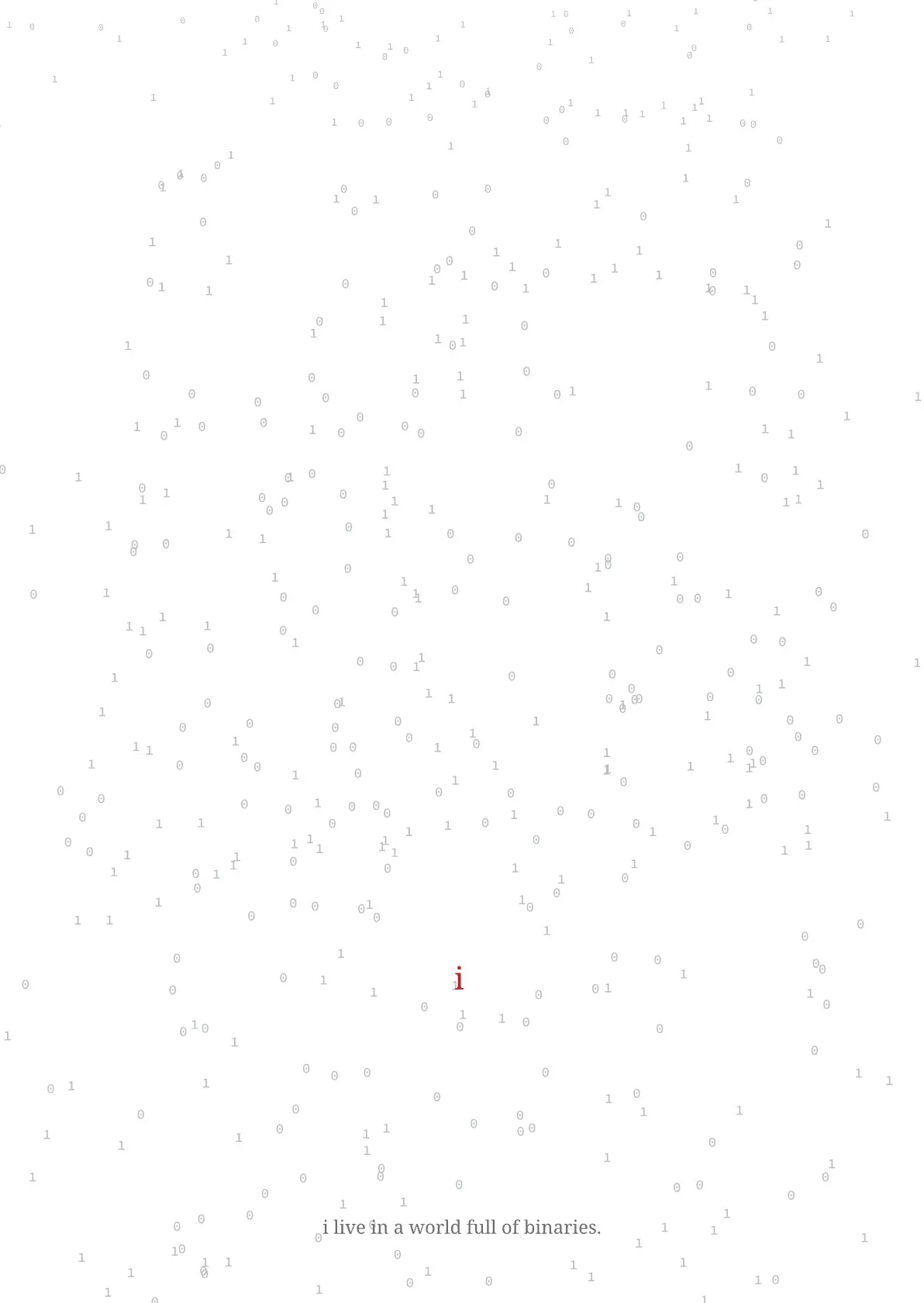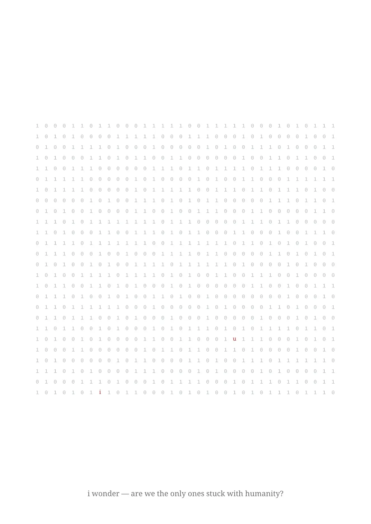 this is “i” and “u” wondering whether they’re the only ones stuck with humanity, in a world of binaries.