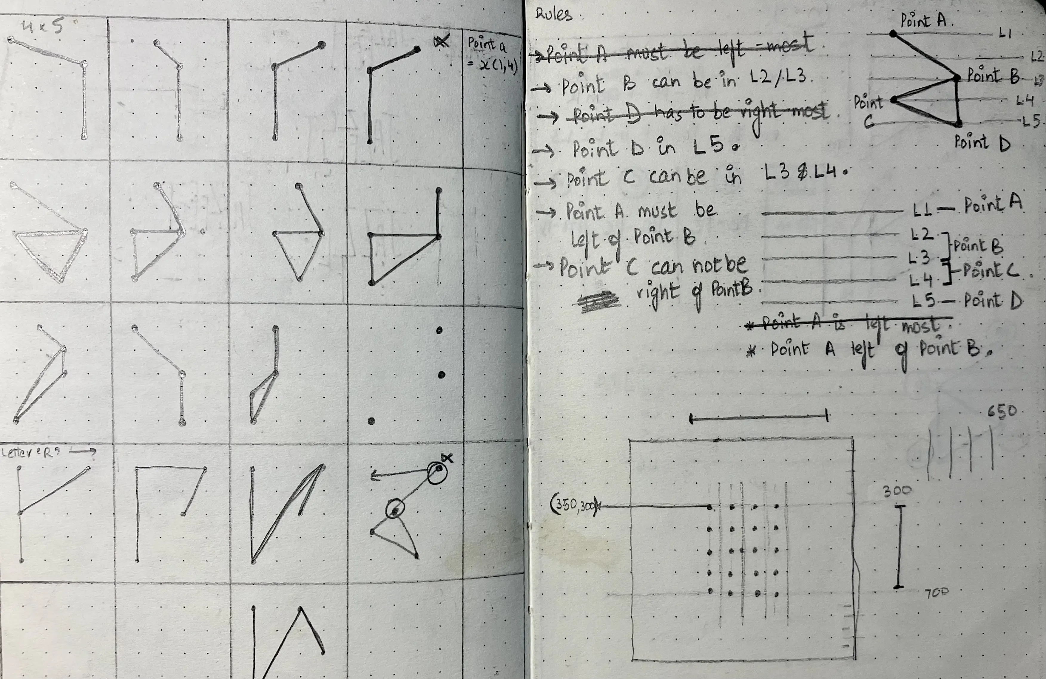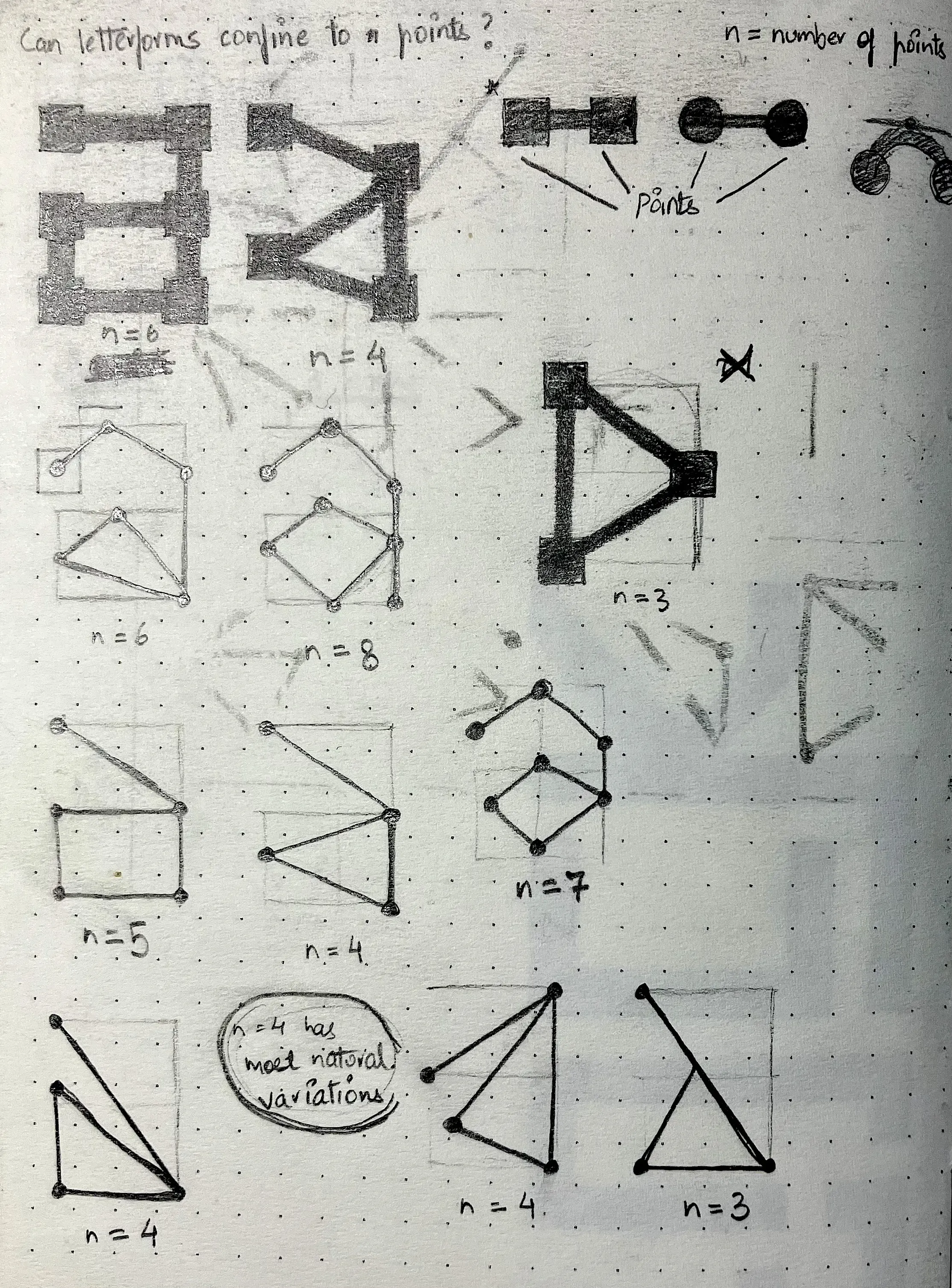 we took my earlier n=4 explorations as a base, where i had imagined letterforms as a mere set of rules, and used computation to change their visual form over time.