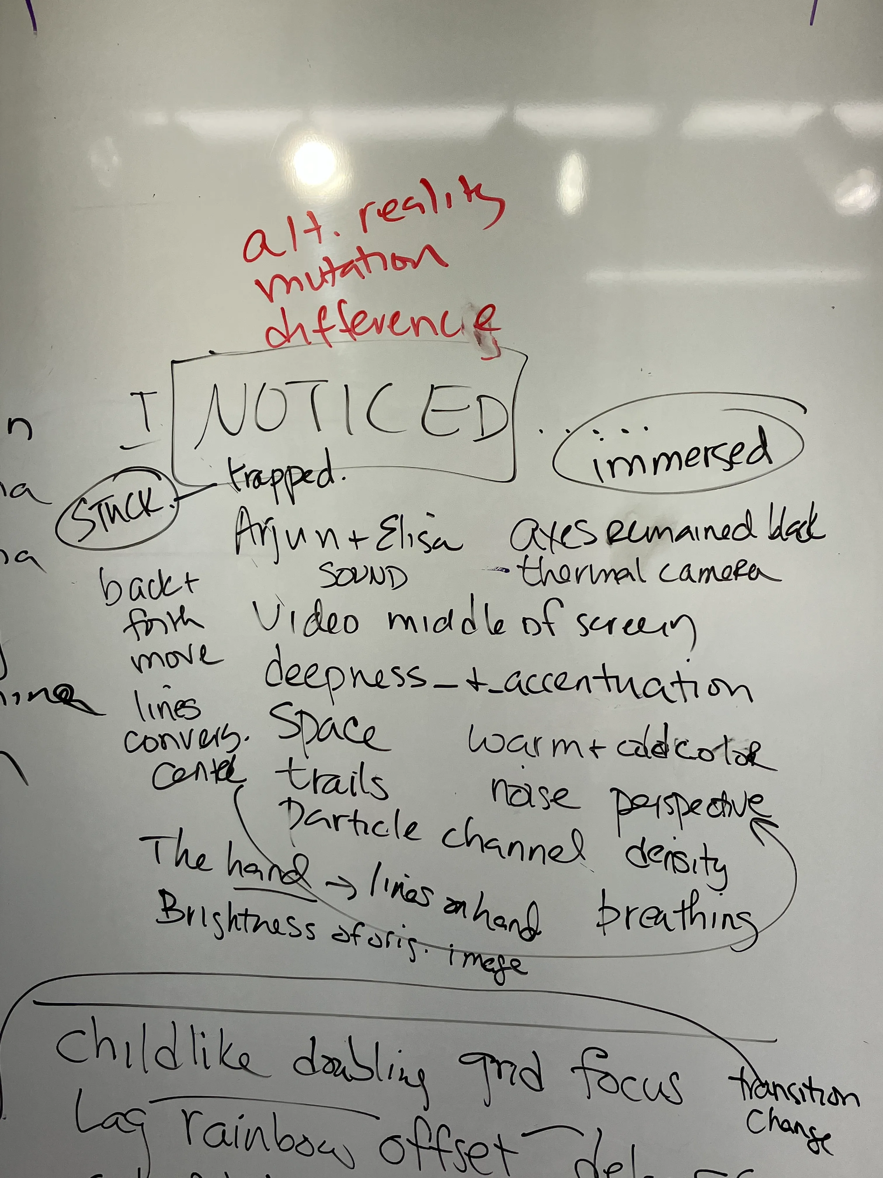 we presented what we made in icm_experiments_week-9_to_week-10. people then wrote down words to describe what they noticed.