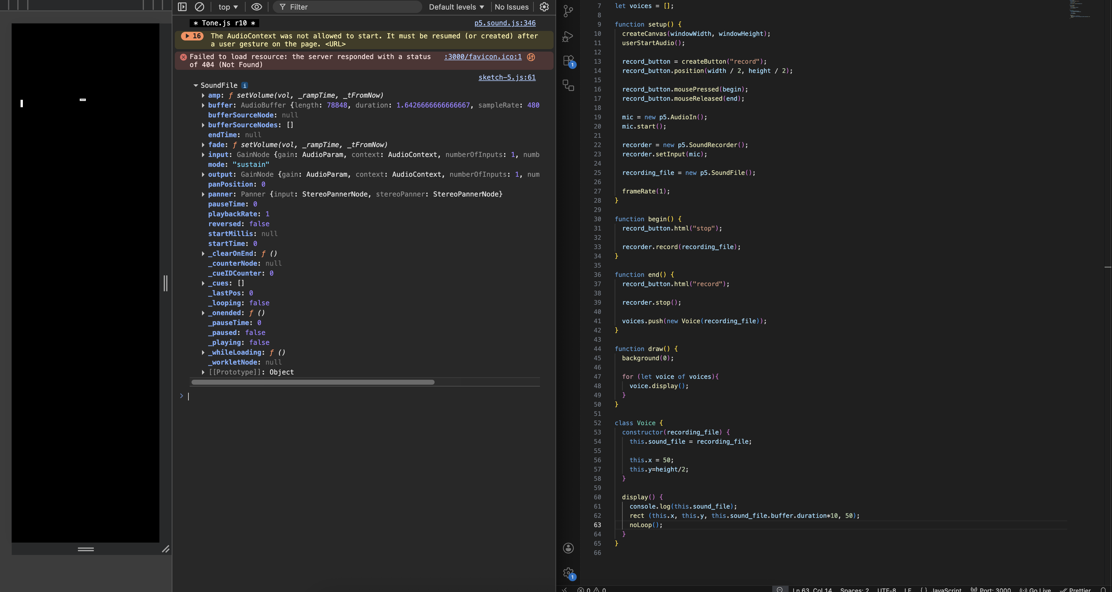 i then met with nnenna. she had made slow progress, but wanted to do something with mapping voice to an oscillator. i went back home, and played around with the piece of code i’d written earlier.