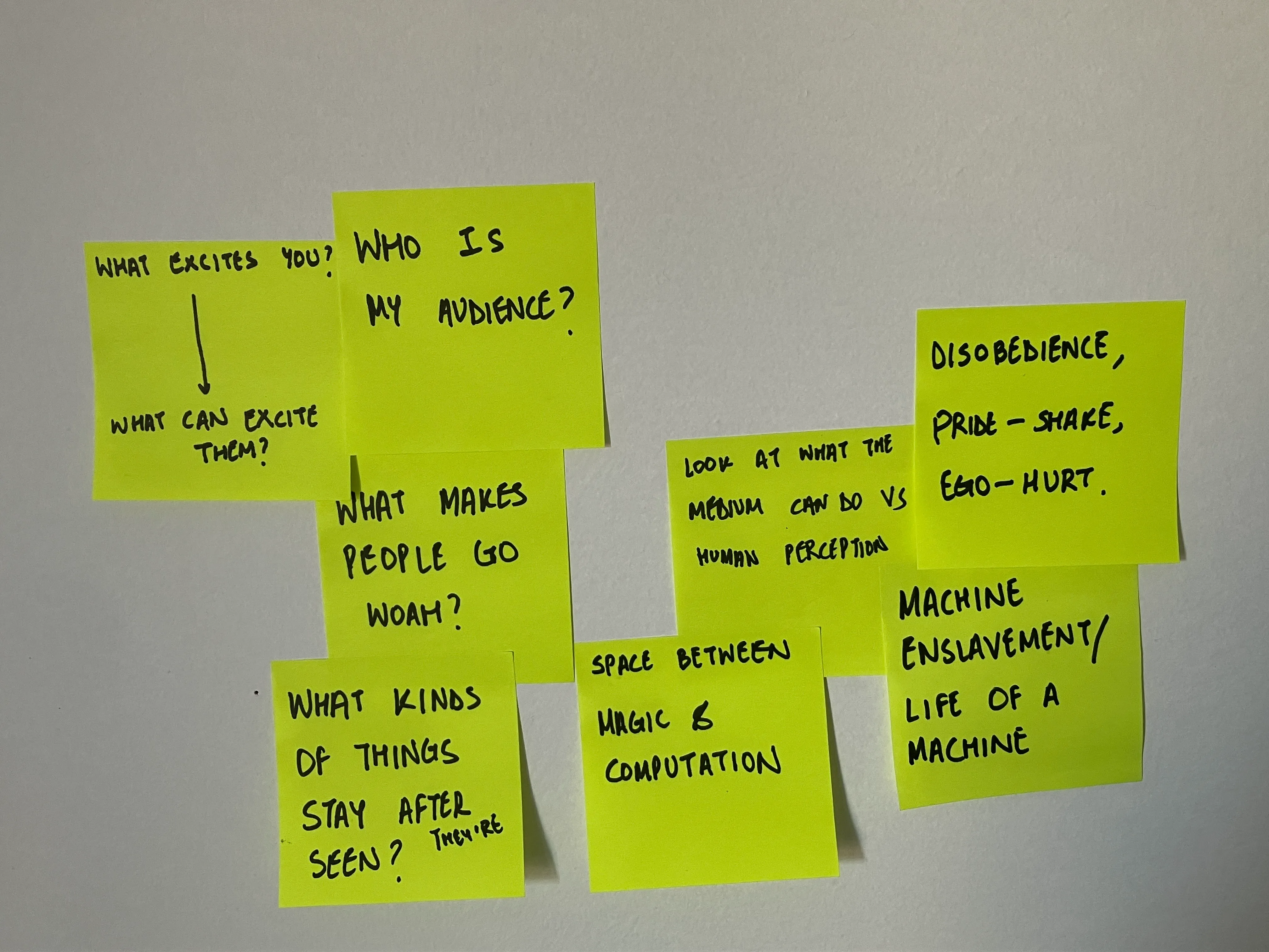 for the second half, i do want to dial down the ‘experience’ bit. i’ve programmed so many things over the years, but felt that they lacked substance. i’m going to use this class to find that space of magic, between perception & computation.