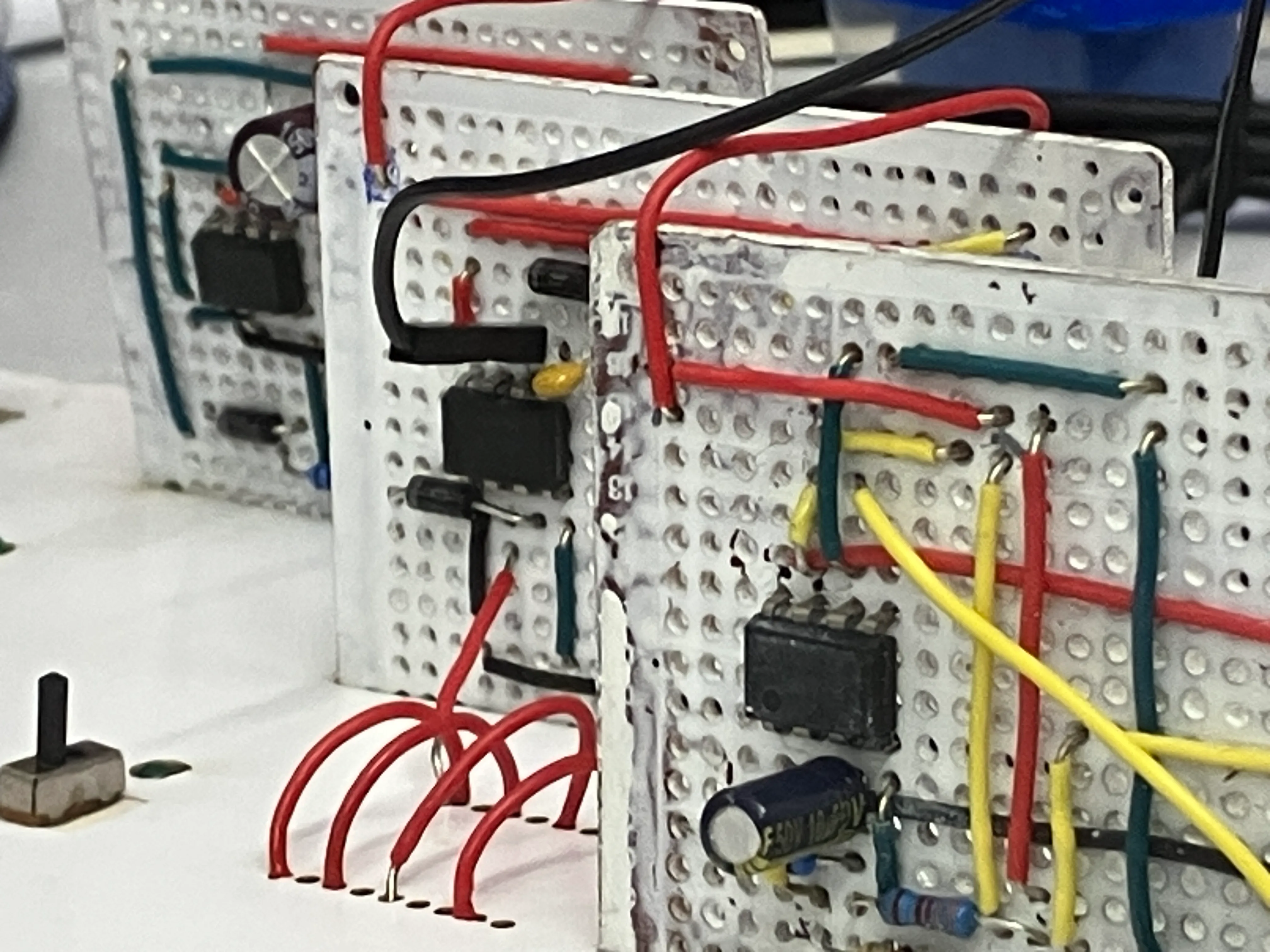 when i soldered things together, my circuit didn’t work the way it did on the breadboard. however, because i had made many circuits with the 555 before this, i was able to quickly build up a circuit and compare to debug.