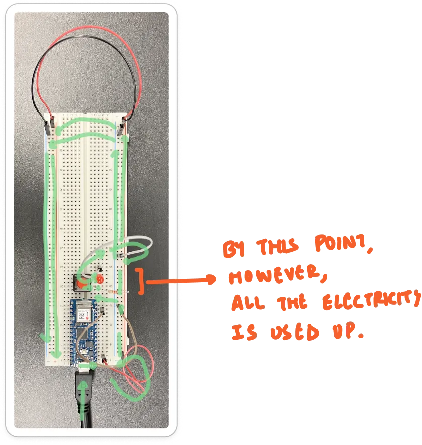 and this is how electricity is passed through a powered-circuit, with a switch and an led.