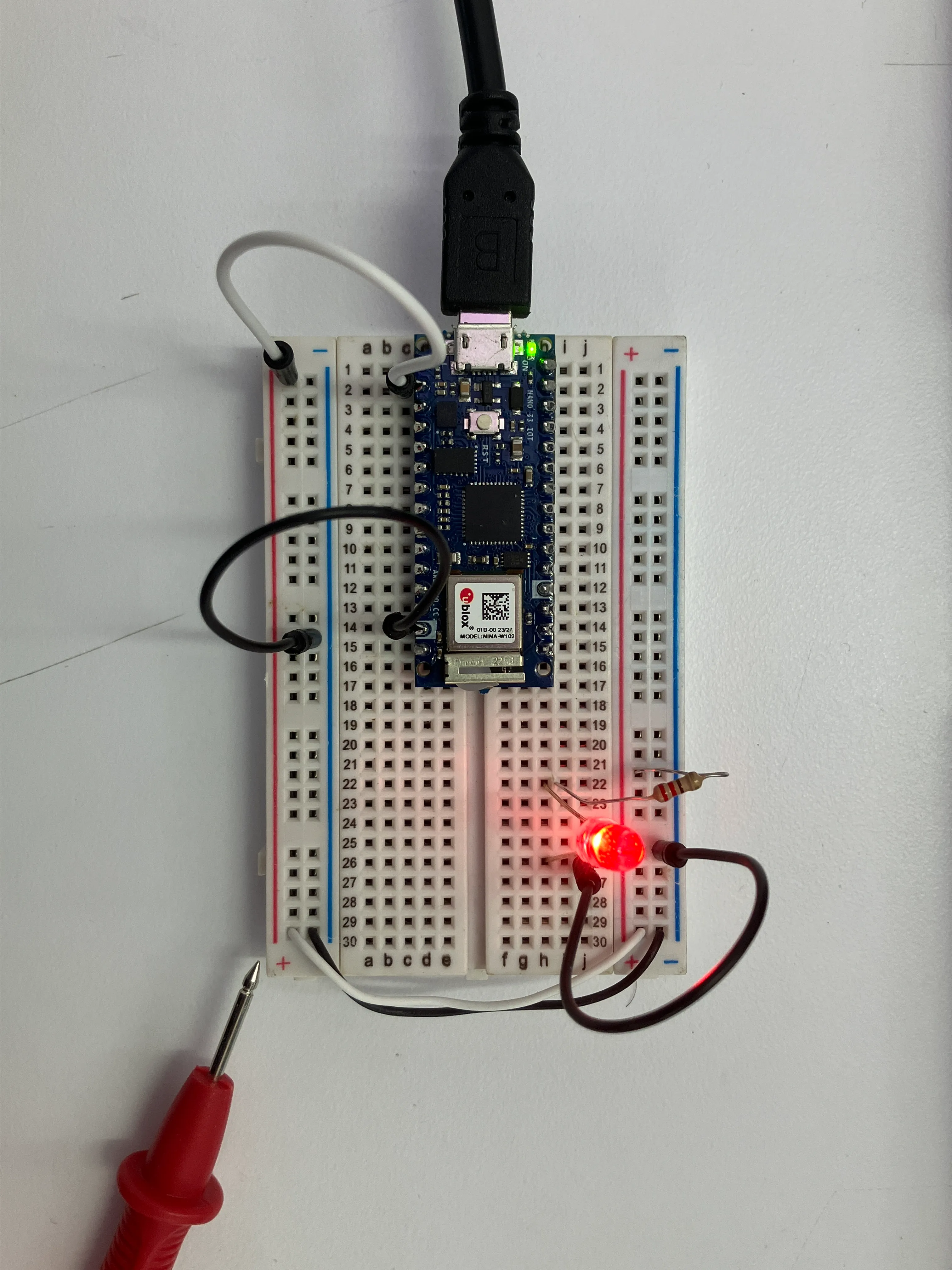 in the below image, the computer gives out 5v, which runs through the breadboard, and lights up the led via the resistor.