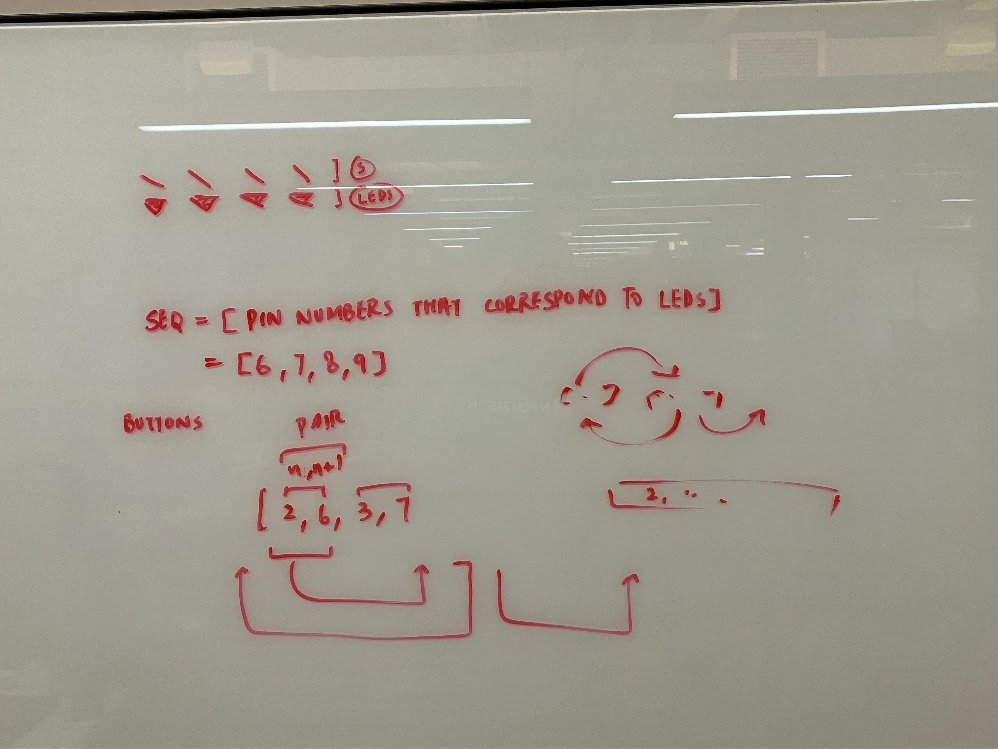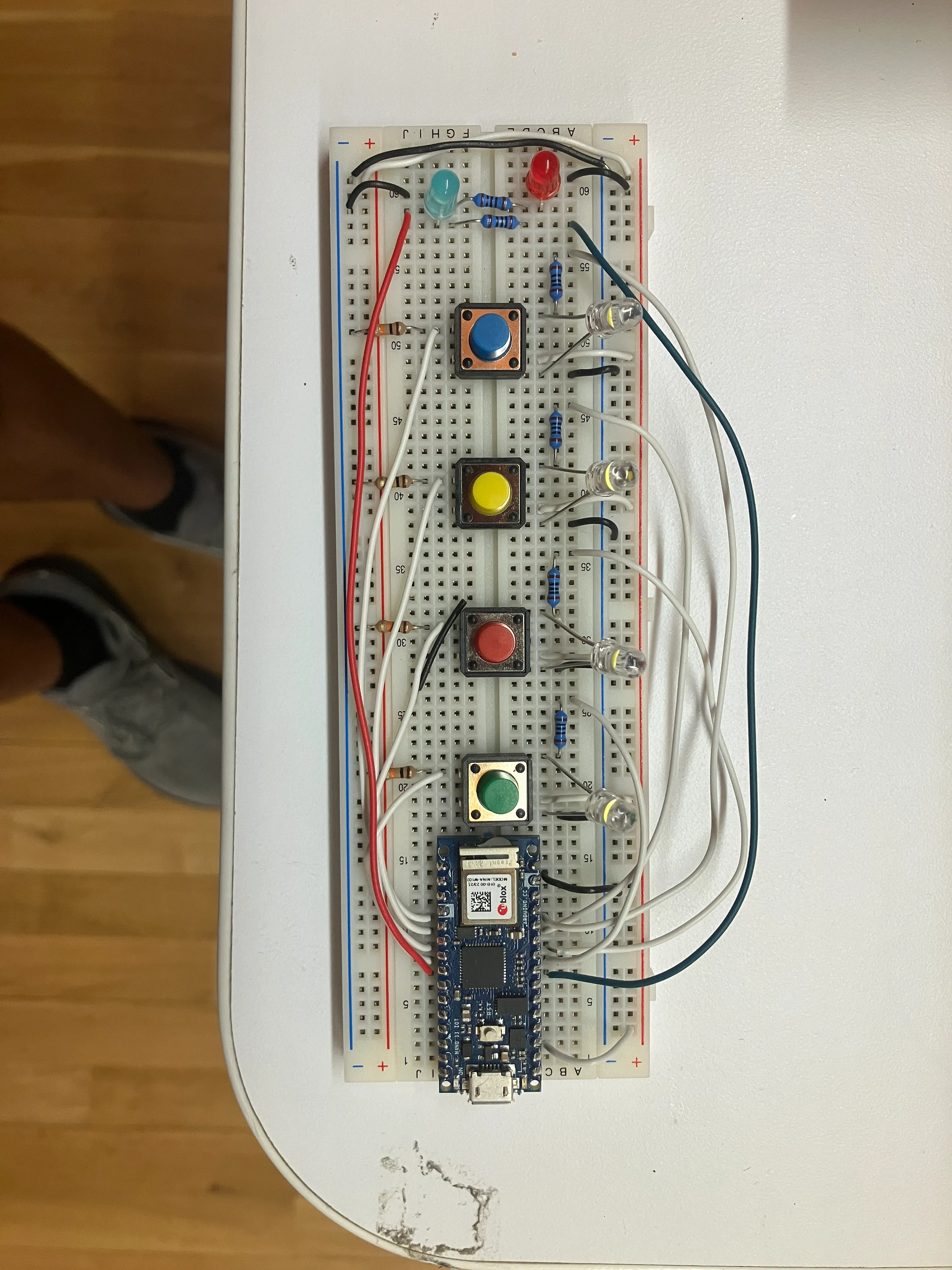 // }i still need to figure out why the yellow button on my breadboard doesn’t work (my guess is that it’s on the bad row of my breadboard), why the success & error led-s aren’t working, and how to increment the sequence to be played by 2.