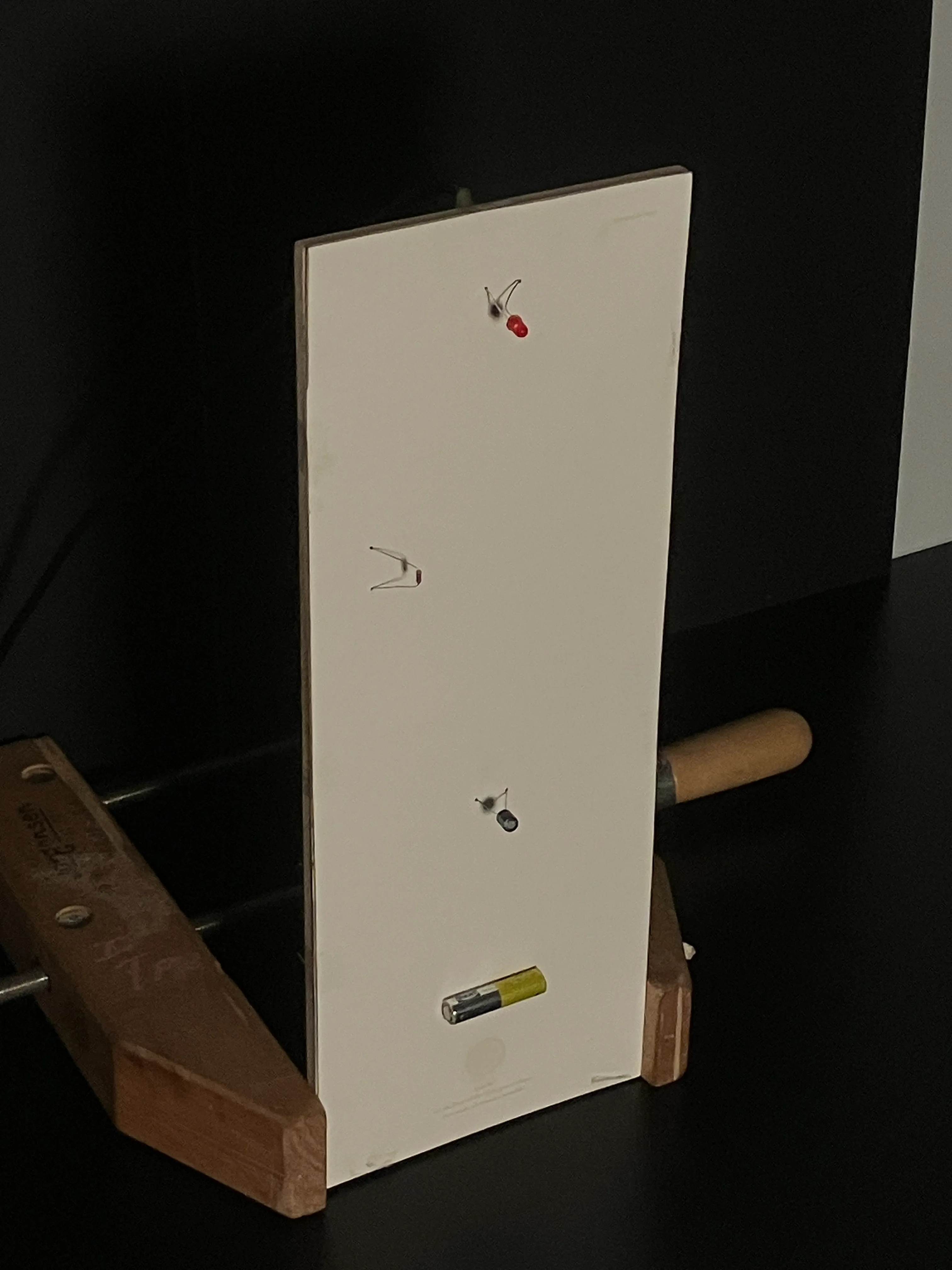 i chose to lay out components straight, as opposed to the conventional circle to communicate flow, since the ‘electrons’ have to be pushed into the next component. i also added the capacitor, to show electromotive-force gradually reduce through the circuit, as the capacitor gives off its stored current (when the power source is turned off).