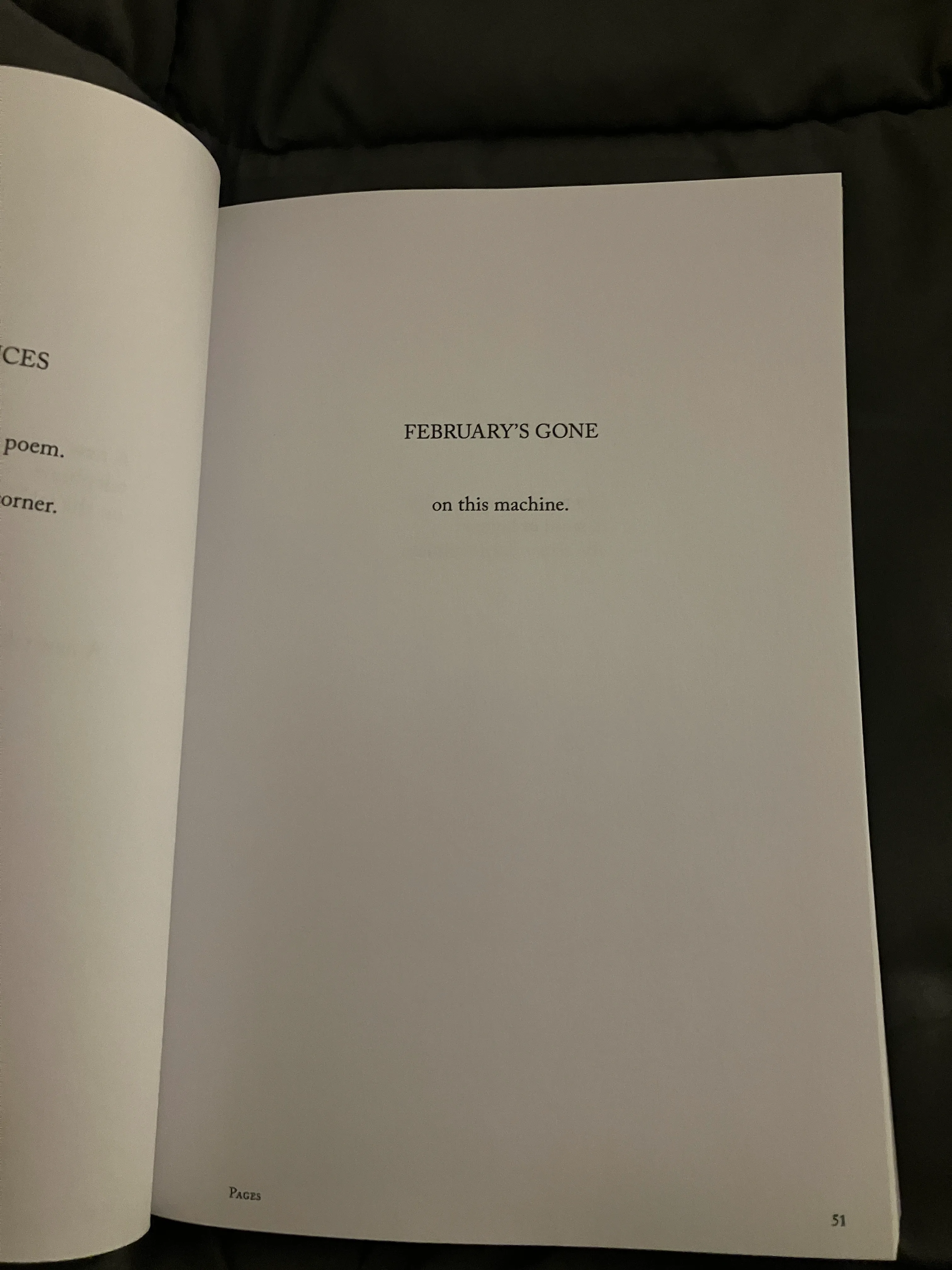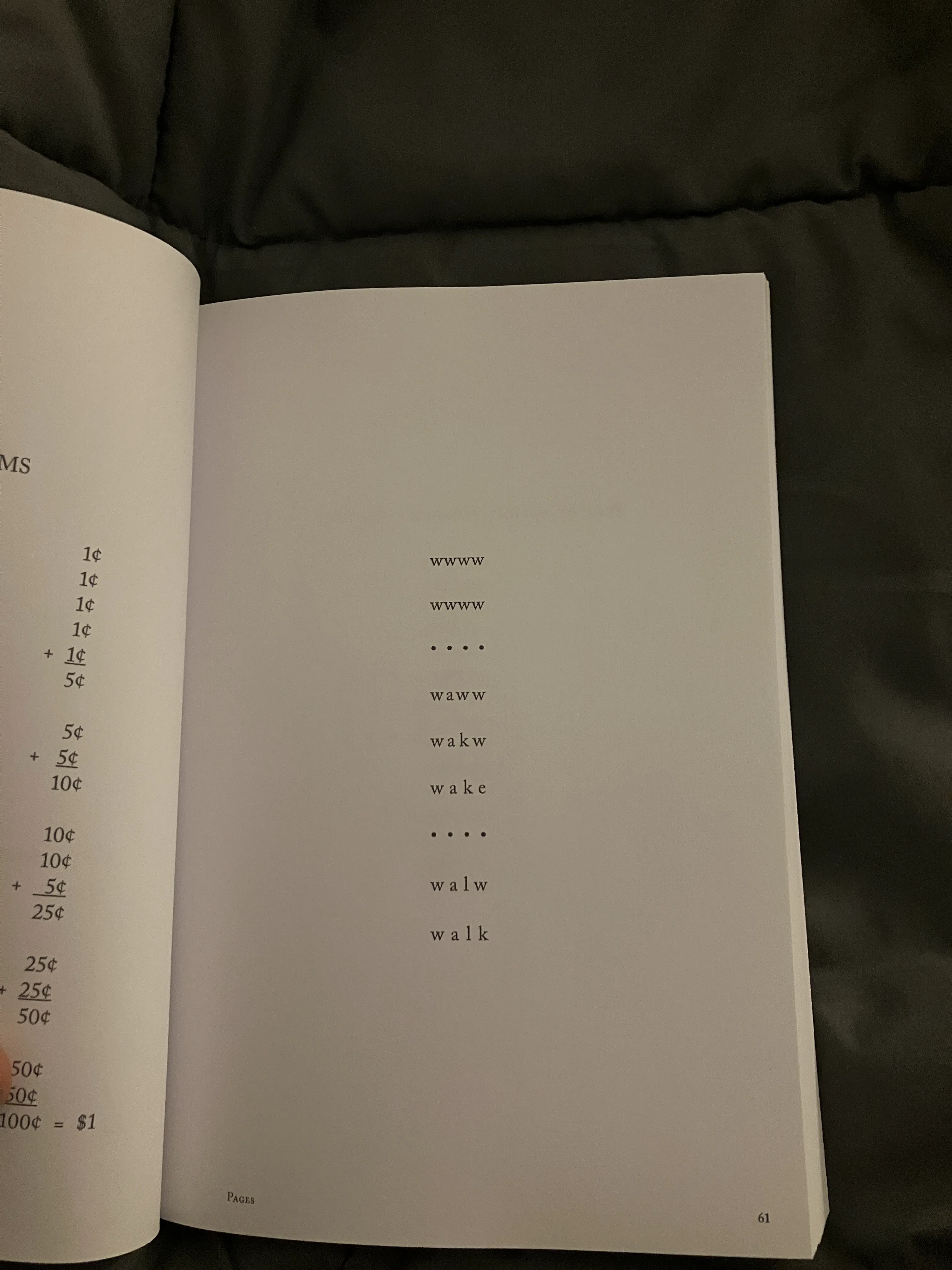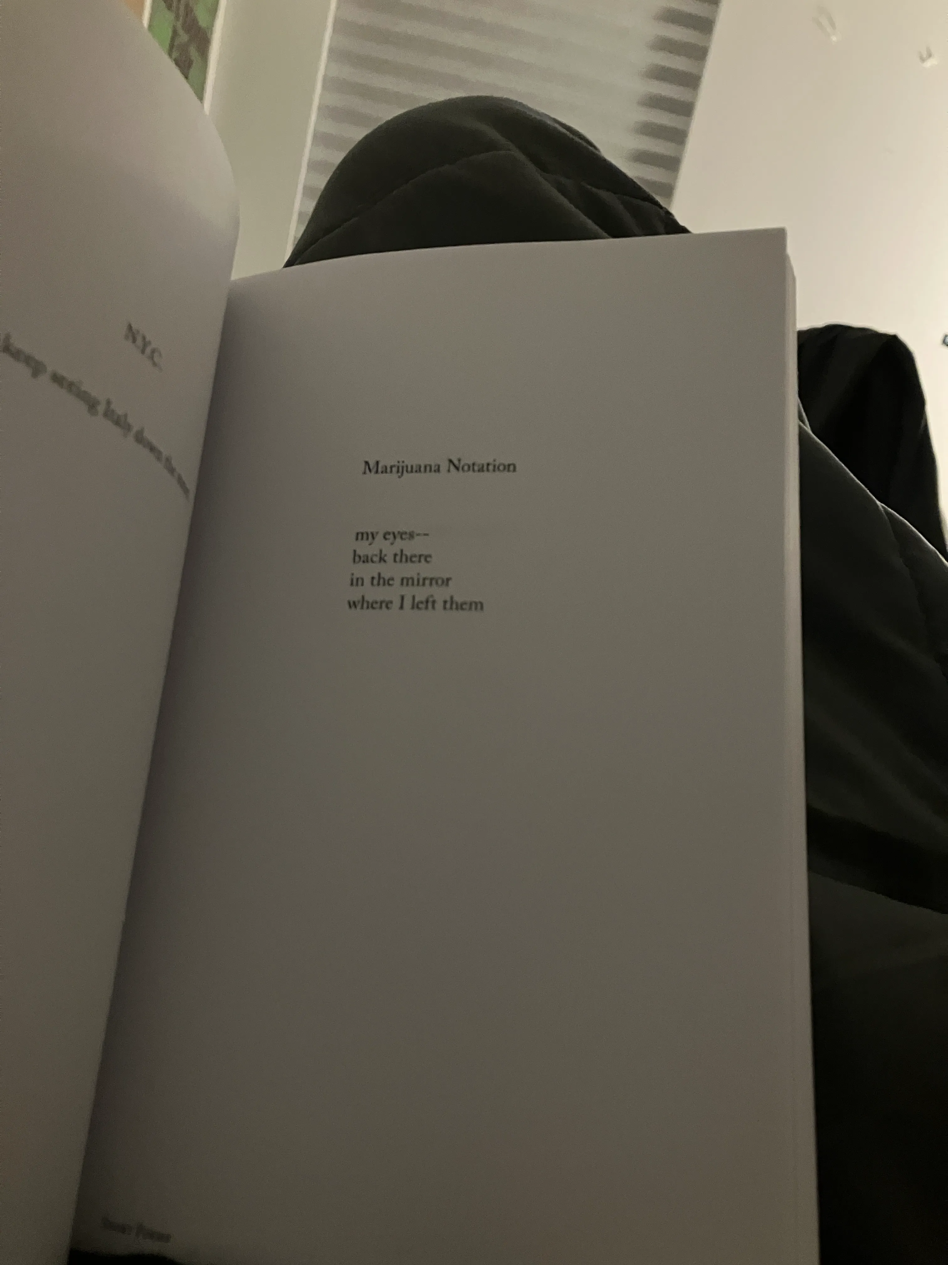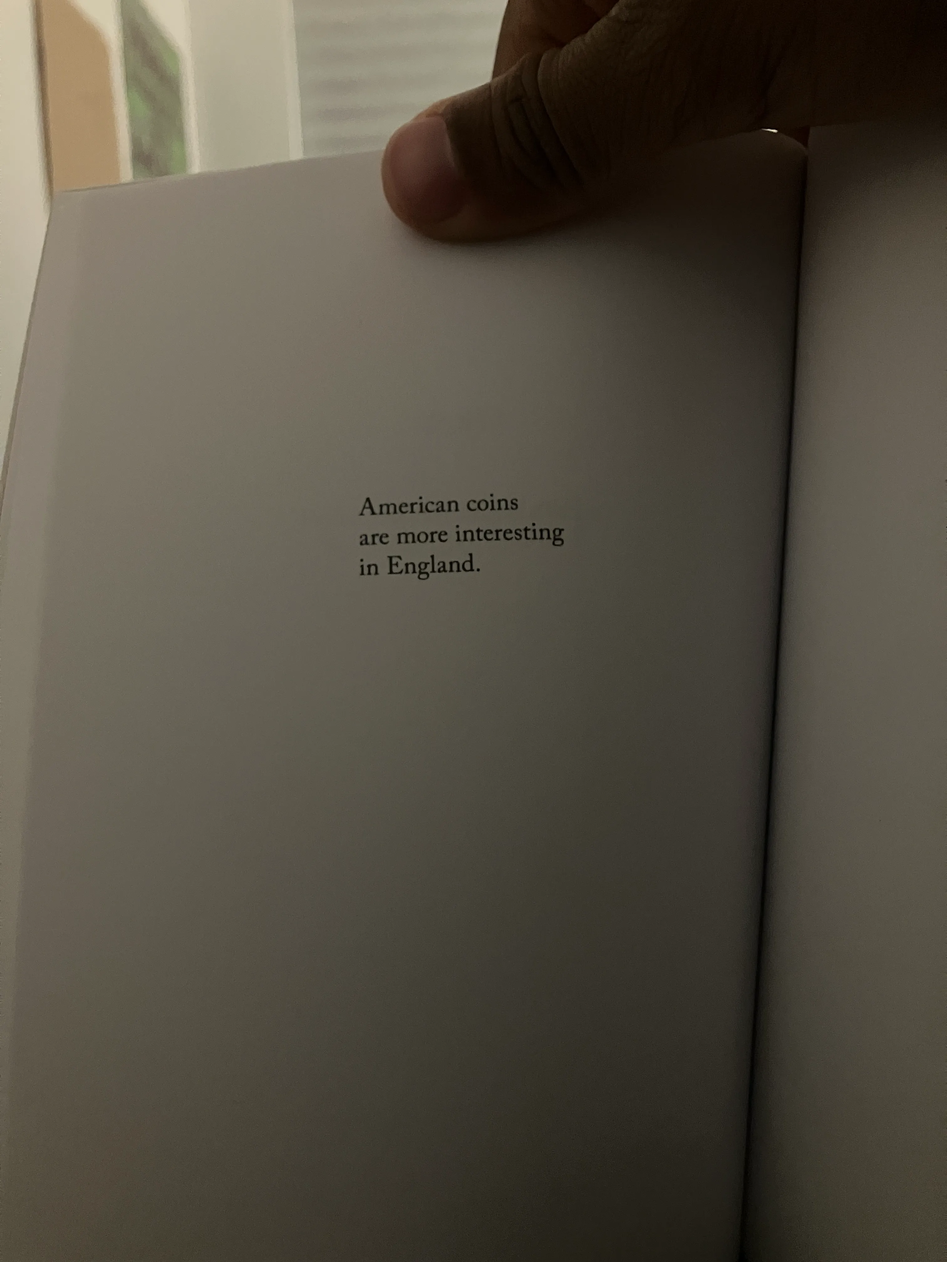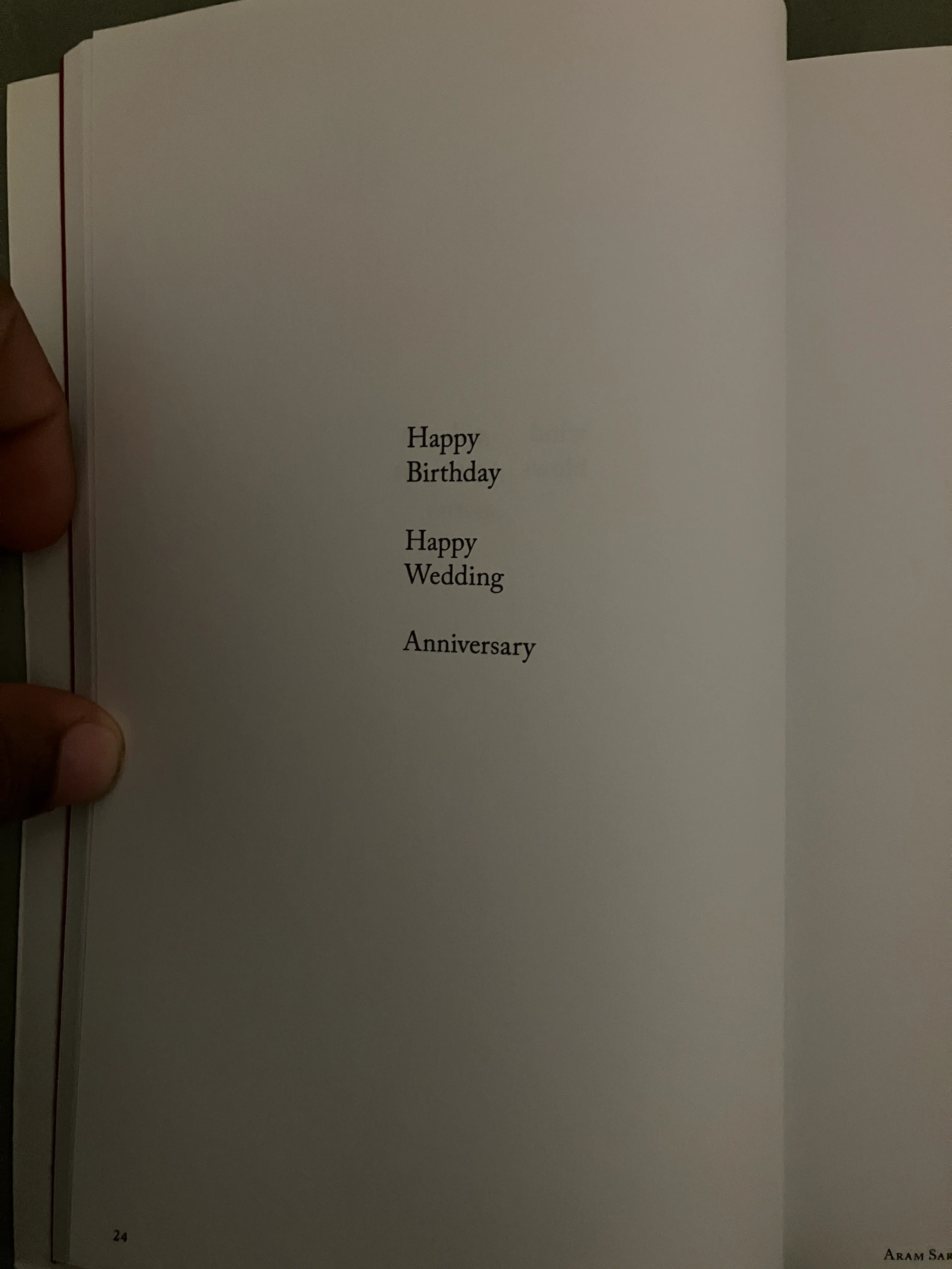 allison parrish let me borrow her copy of complete minimal poems, by aram saroyan; during my conversation with her (conversation with allison).
