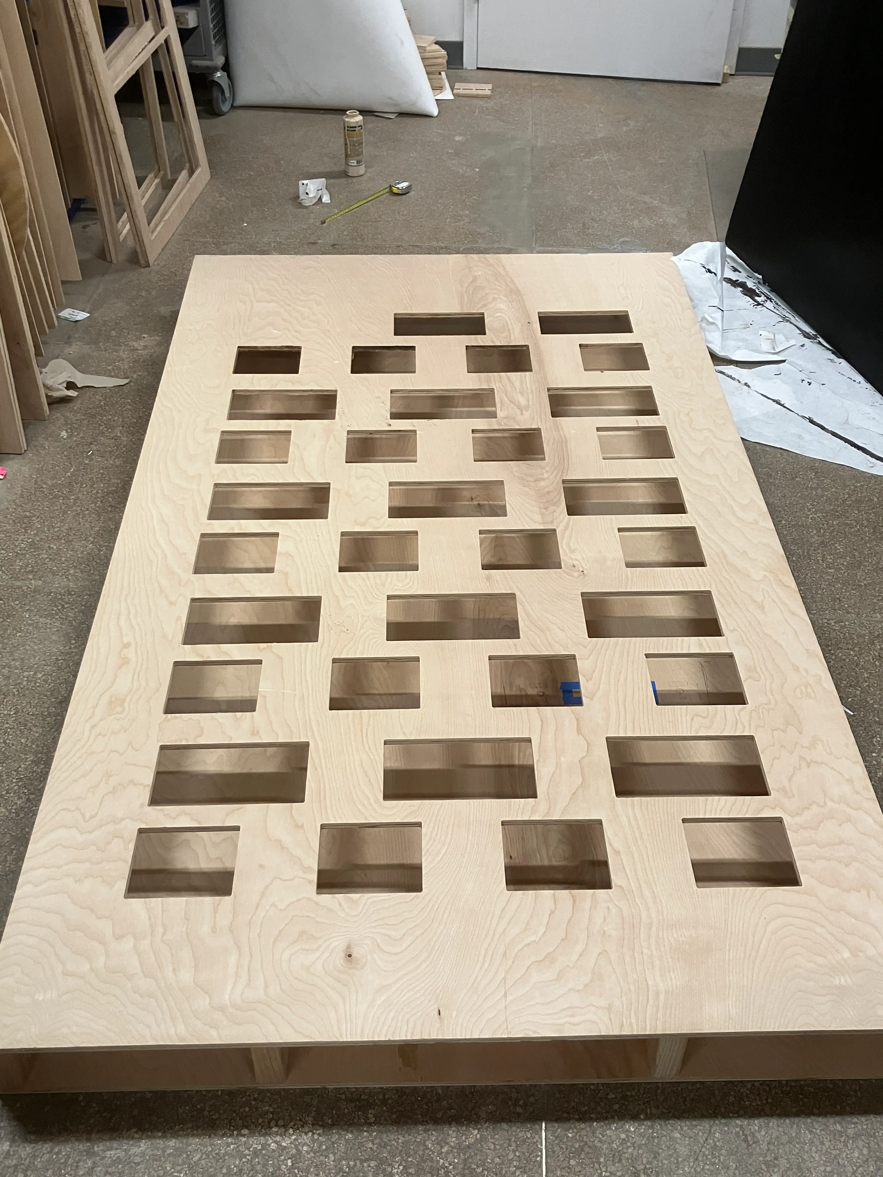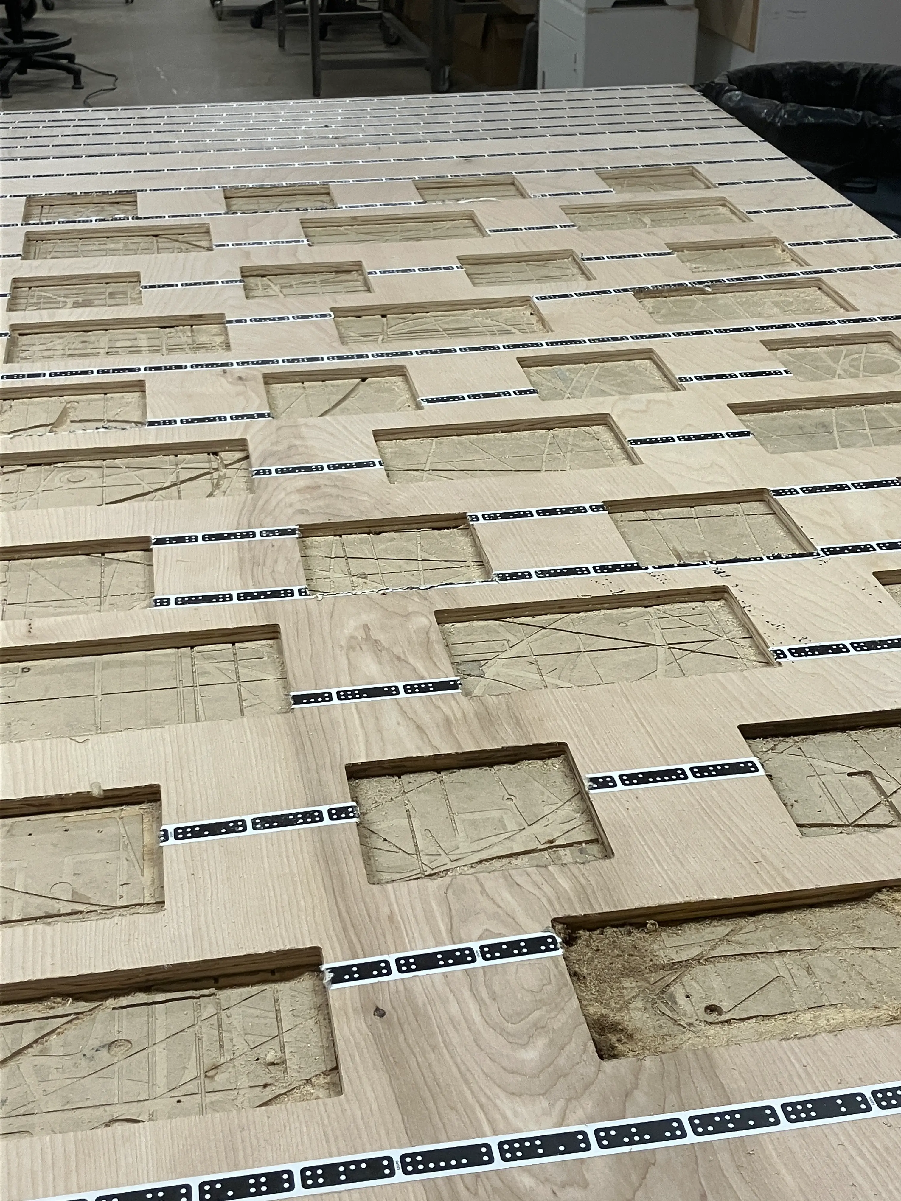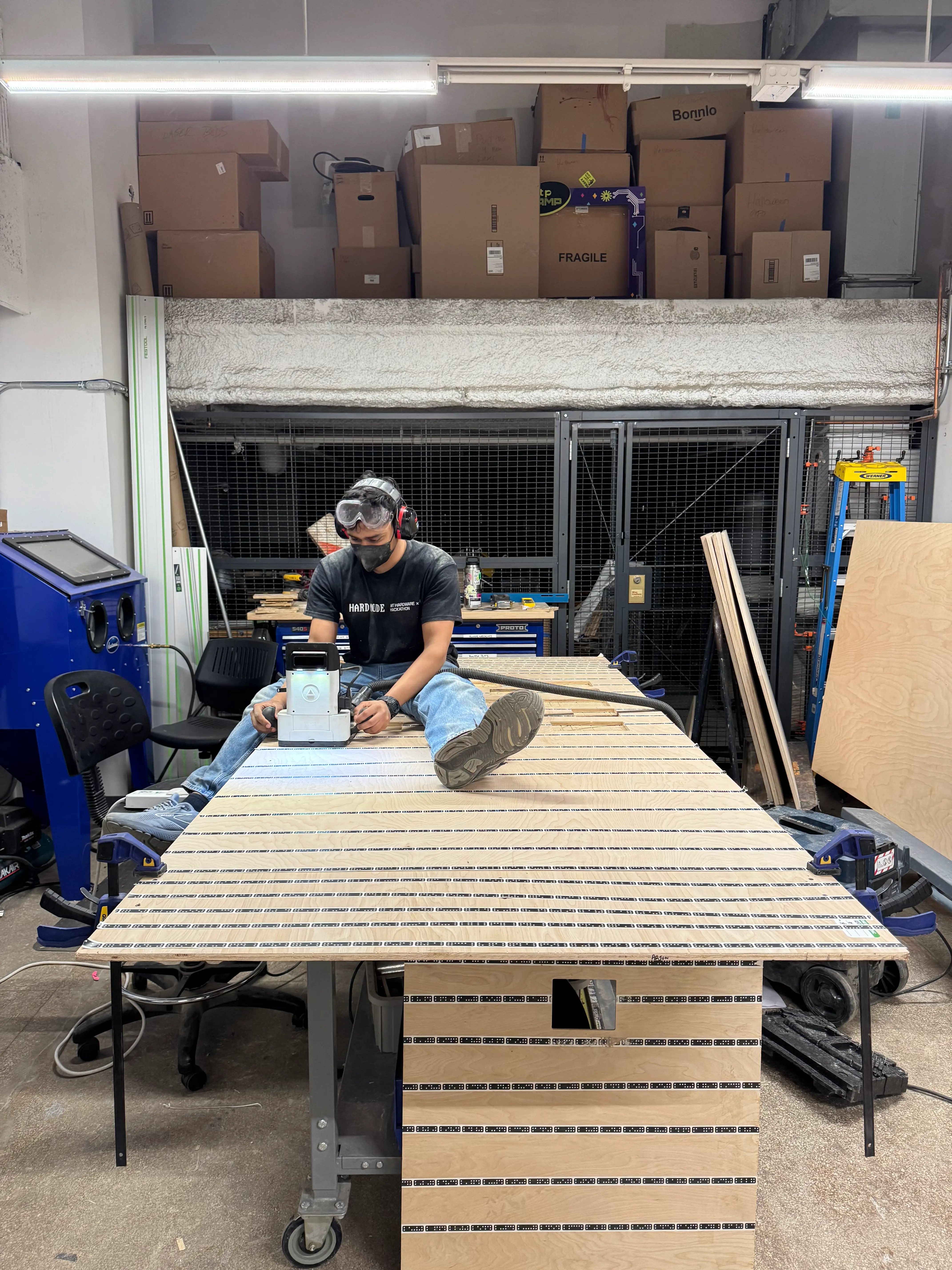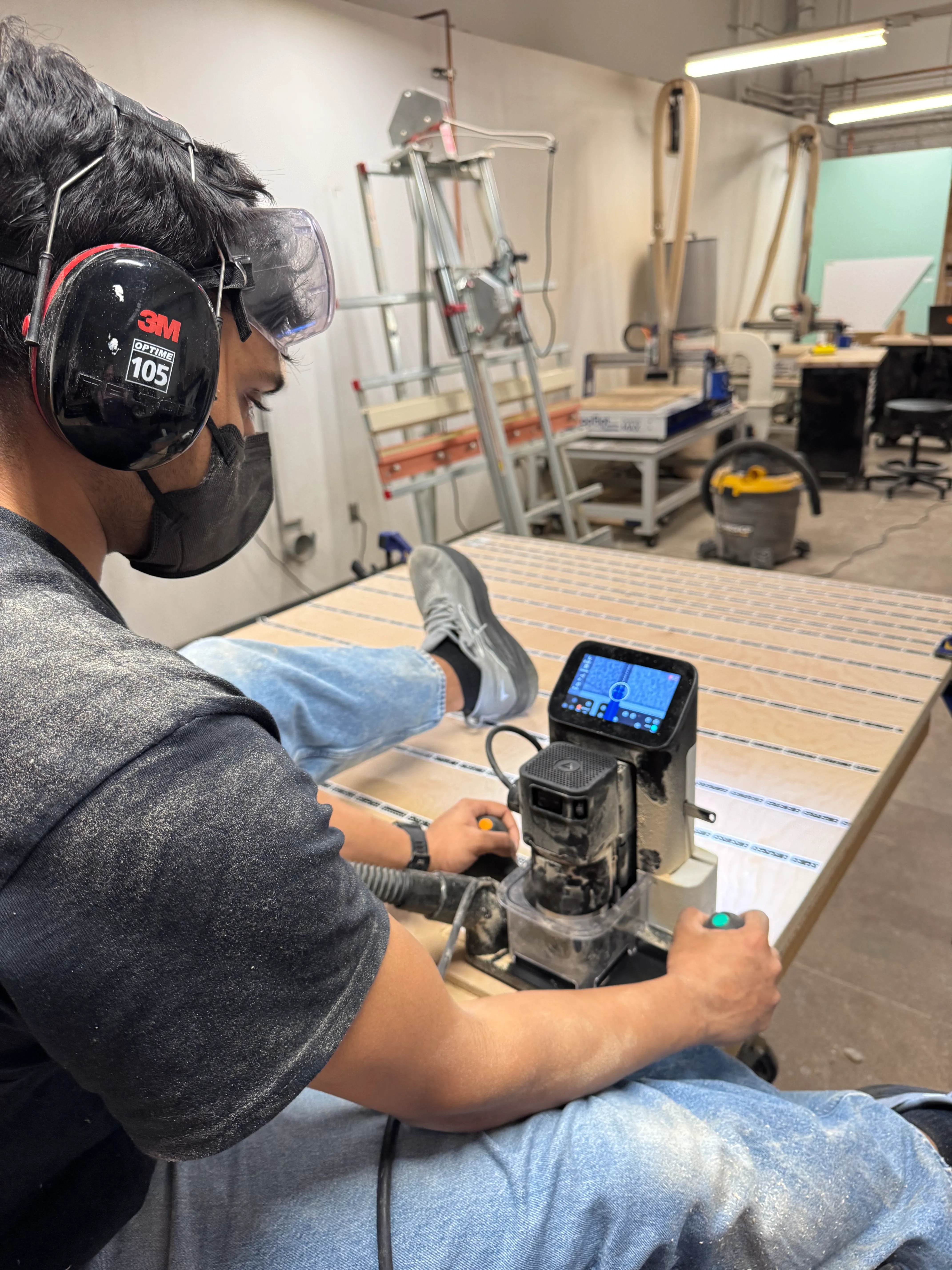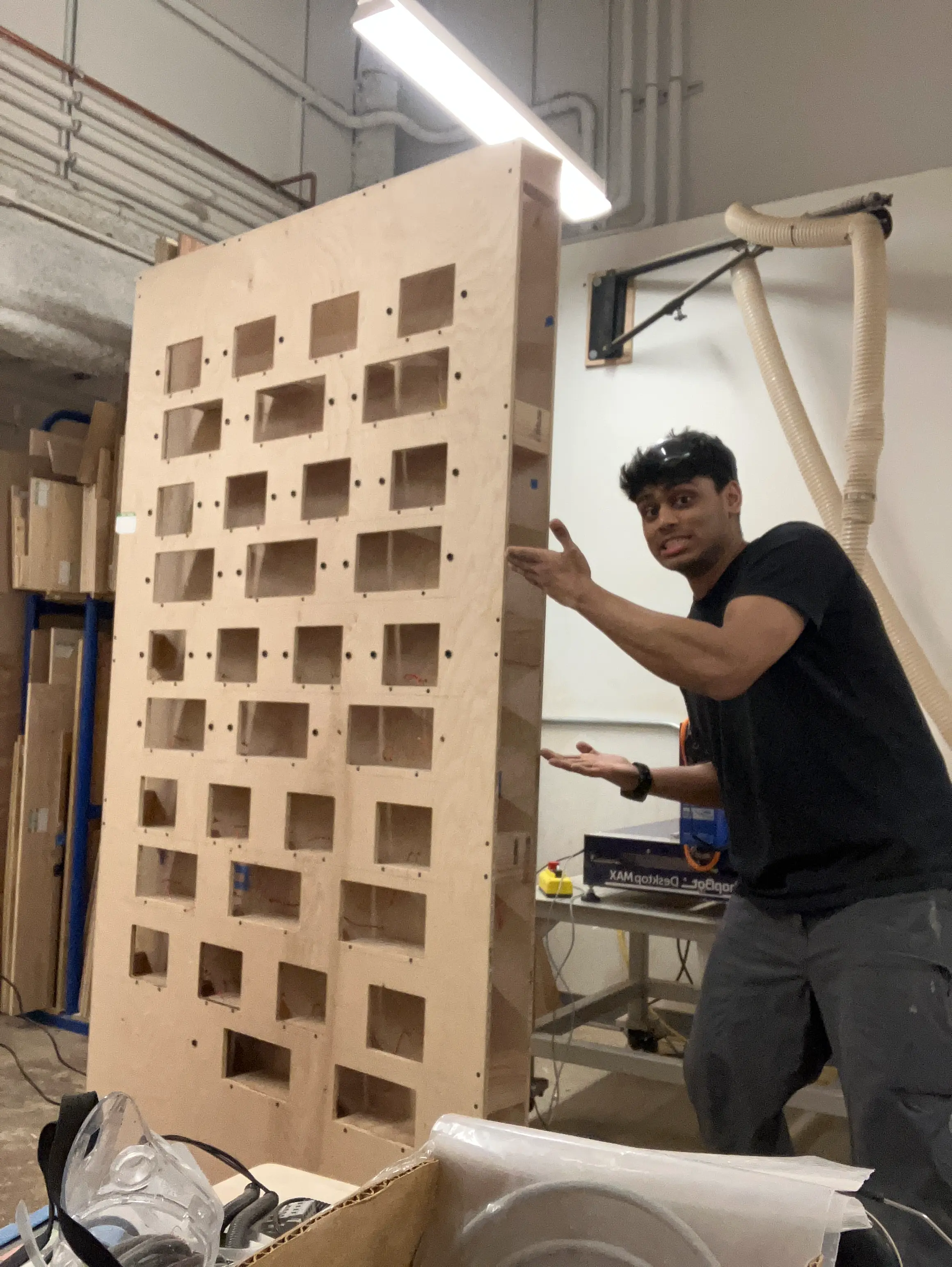 audrey helped me cut my 8x4ft panels to 7x4ft. she suggested to use the shaper to cut the breadboard-cut-outs, but i was under-confident; booked an office-hour with ian cox. phil helped me understand the shaper, and audrey kindly helped me set it up.