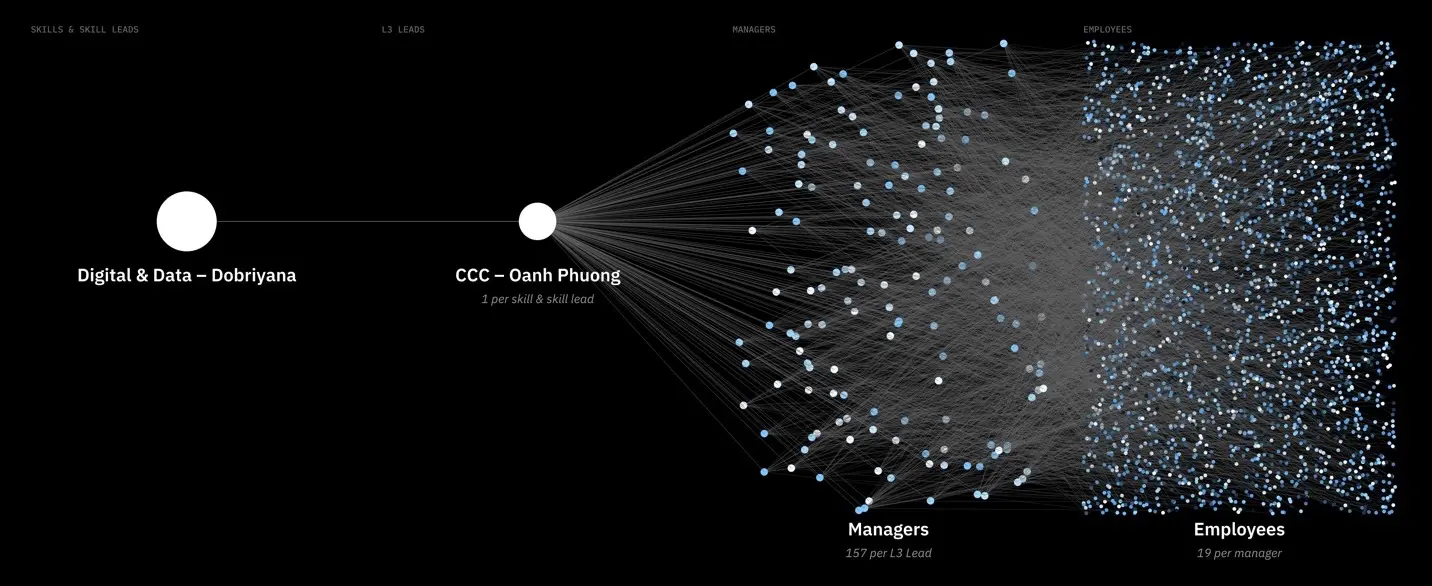 during my first month at tinkerlabs, vaibhavi & abhi were struggling to communicate how instruction from senior-management-members is lost as it is eventually transferred to junior-members at hp, due to the high number of employees. they had the data, but were unable to show the scale.