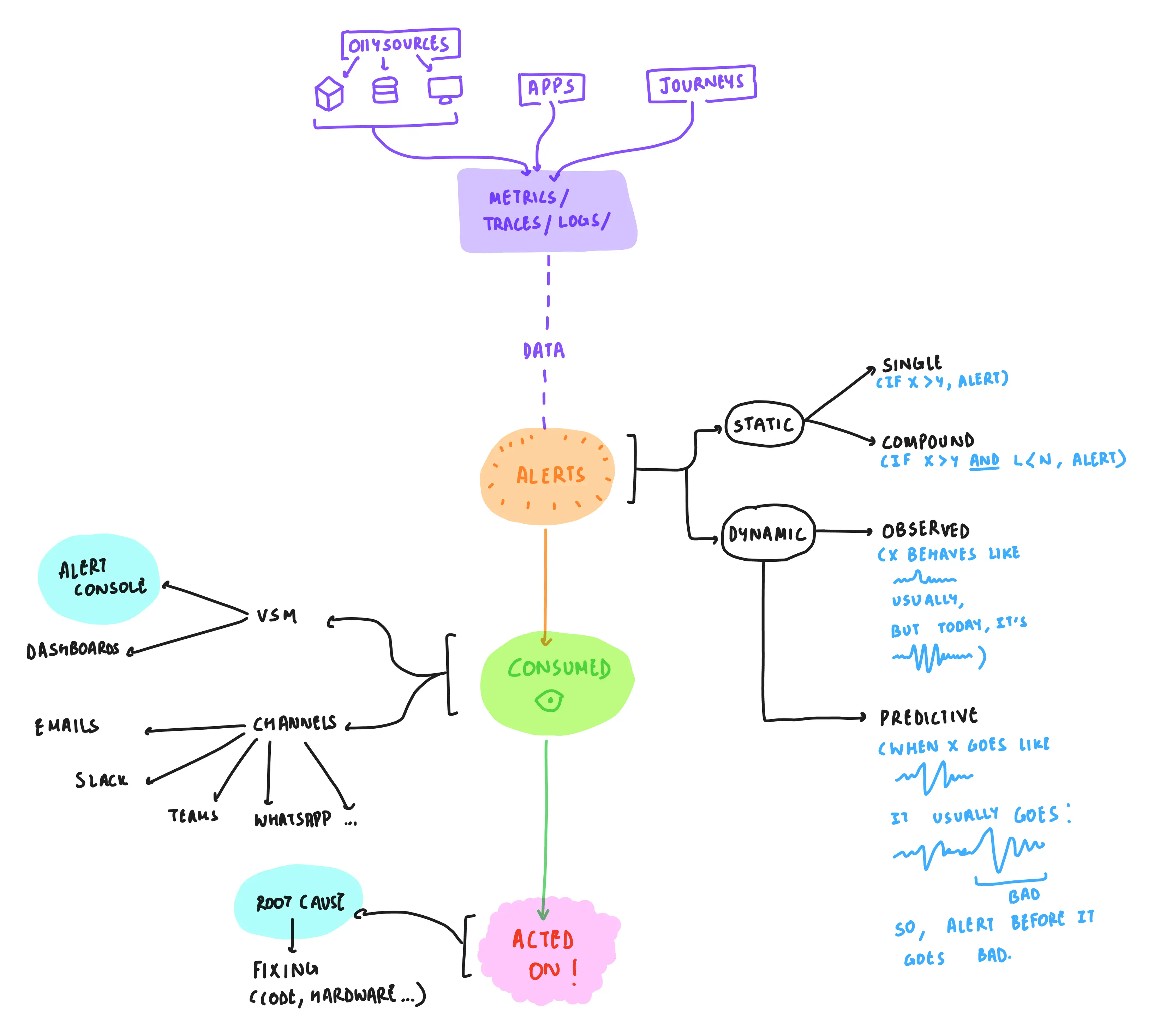 through human-defined or machine-defined rules, vsm generated alerts for the above-mentioned things. when clicked on, an alert was expected to help a person resolve the issue quickly — by enabling faster escalation, helping with root-cause-analyses, and aiding in debugging.